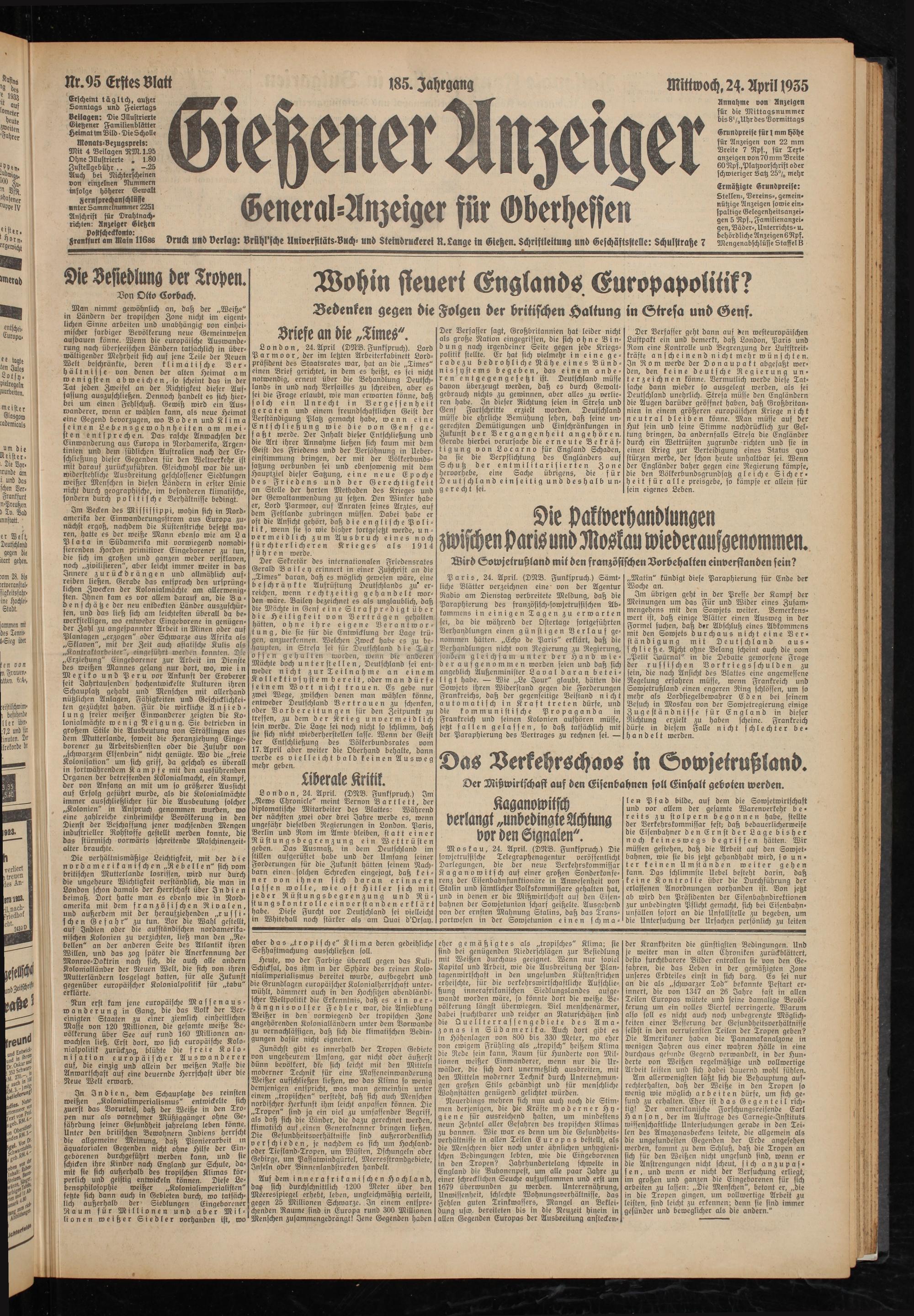 Mittwoch, 2^. April 1935