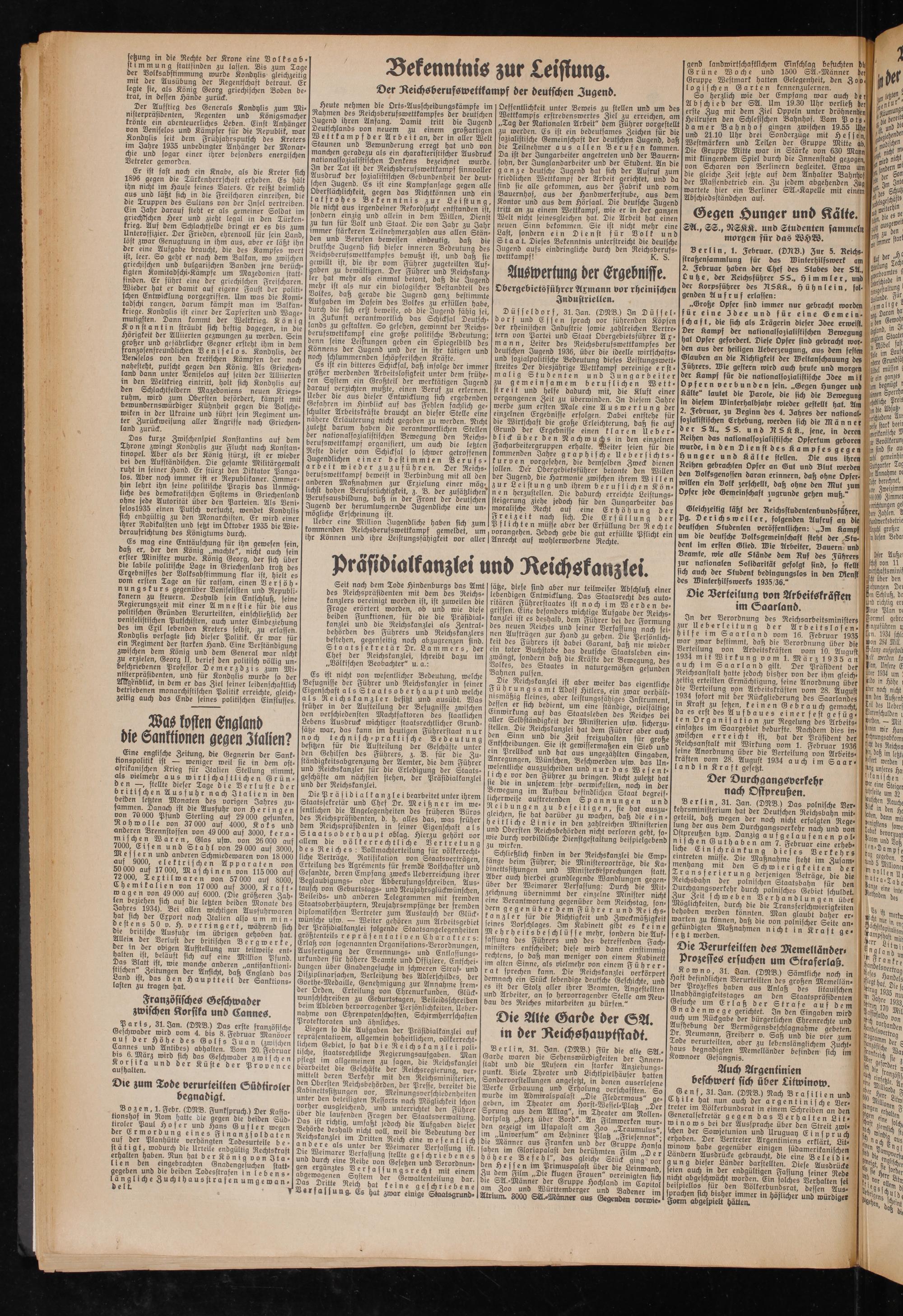 Gleichzeitig läßt der Reichsftudentenbundsführer, Pg. Derichsweiler, folgenden Aufruf an die deutschen Studenten veröffentlichen: „3m Kampf um die deutsche Volksgemeinschaft steht der Student im ersten Glied. Wie Arbeiter, Bauern und Beamte, wie alle Stände dem Ruf des Führers zur nationalen Solidarität gefolgt sind, so stellt sich auch der Student bedingungslos in den Dienst des Vinterhilfswerks 1935/36.“