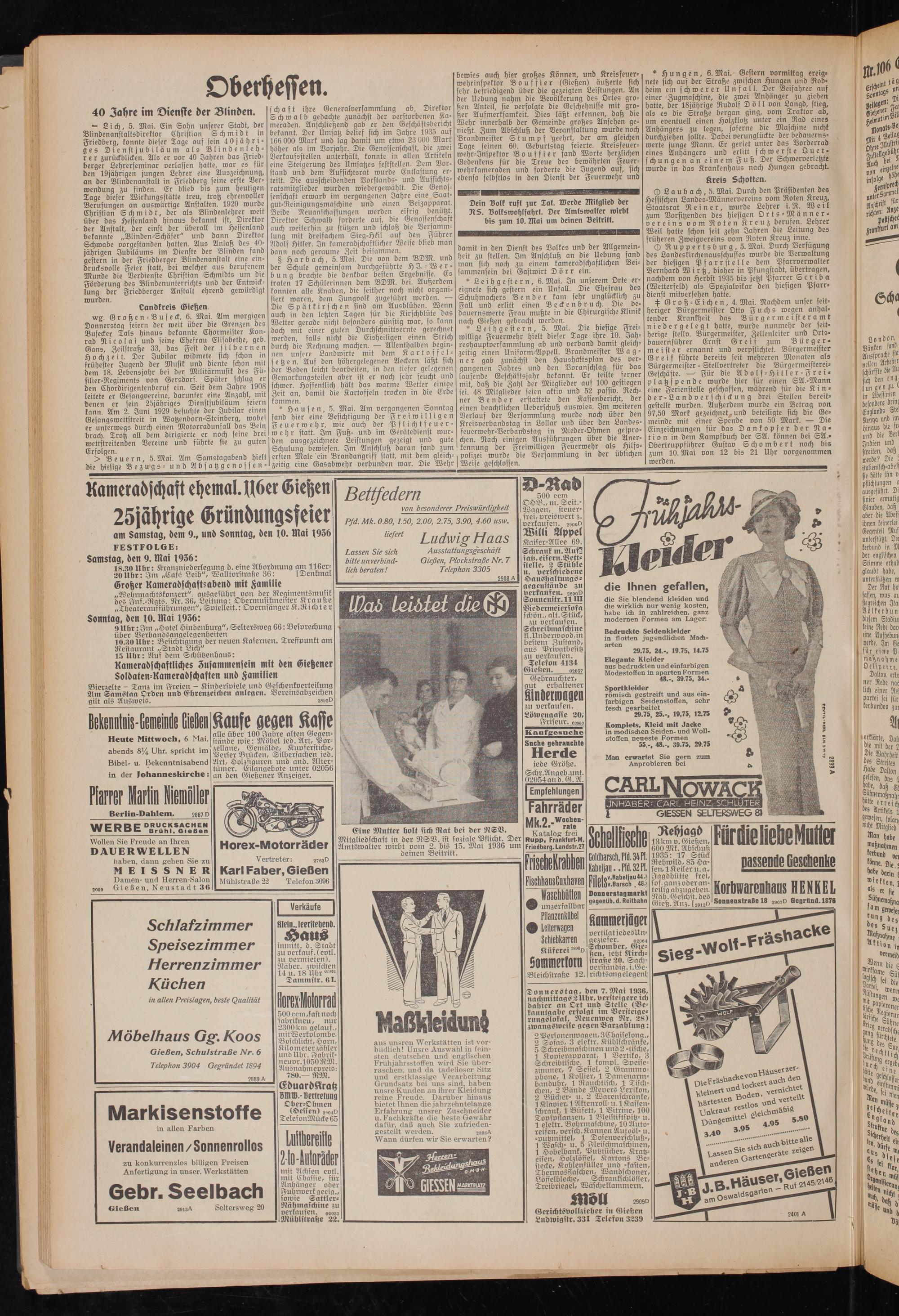 wg. Großen-Bufeck, 6. Mai. Am morgigen Donnerstag feiern der weit über die Grenzen des Busecker Tals hinaus bekannte Chormeister Konrad Nicolai und seine Ehefrau Elisabethe, geb. Gans, Zeilstraße 33, das Fest der silbernen Hochzeit. Der Jubilar widmete sich schon in frühester Jugend der Musik und diente schon mit dem 18. Lebensjahr bei der Militärmusik des Füsilier-Regiments von Gersdorf. Später schlug er den Chordirigentenberuf ein. Seit dem Jahre 1908 leitete er Gesangvereine, darunter eine Anzahl, mit denen er sein' 25jähriges Dienstjubiläum feiern kann. Am 2. Juni 1929 besuchte der Jubilar einen Gesangswettstreit in Watzenborn-Steinberg, wobei er unterwegs durch einen Motorradunfall das Bein brach. Trotz all dem dirigierte er noch feine drei wettstreitenden Vereine und führte sie zu guten Erfolgen.