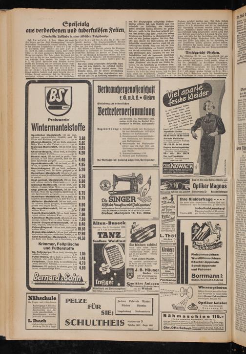 Weitestgehende Zohlungserleichterungen-Mäßige Monatsraten SINGER NÄHMASCHINEN AKTIENGESELLSCHAFT Gießen: Marktplatz 18, Tel. 2004