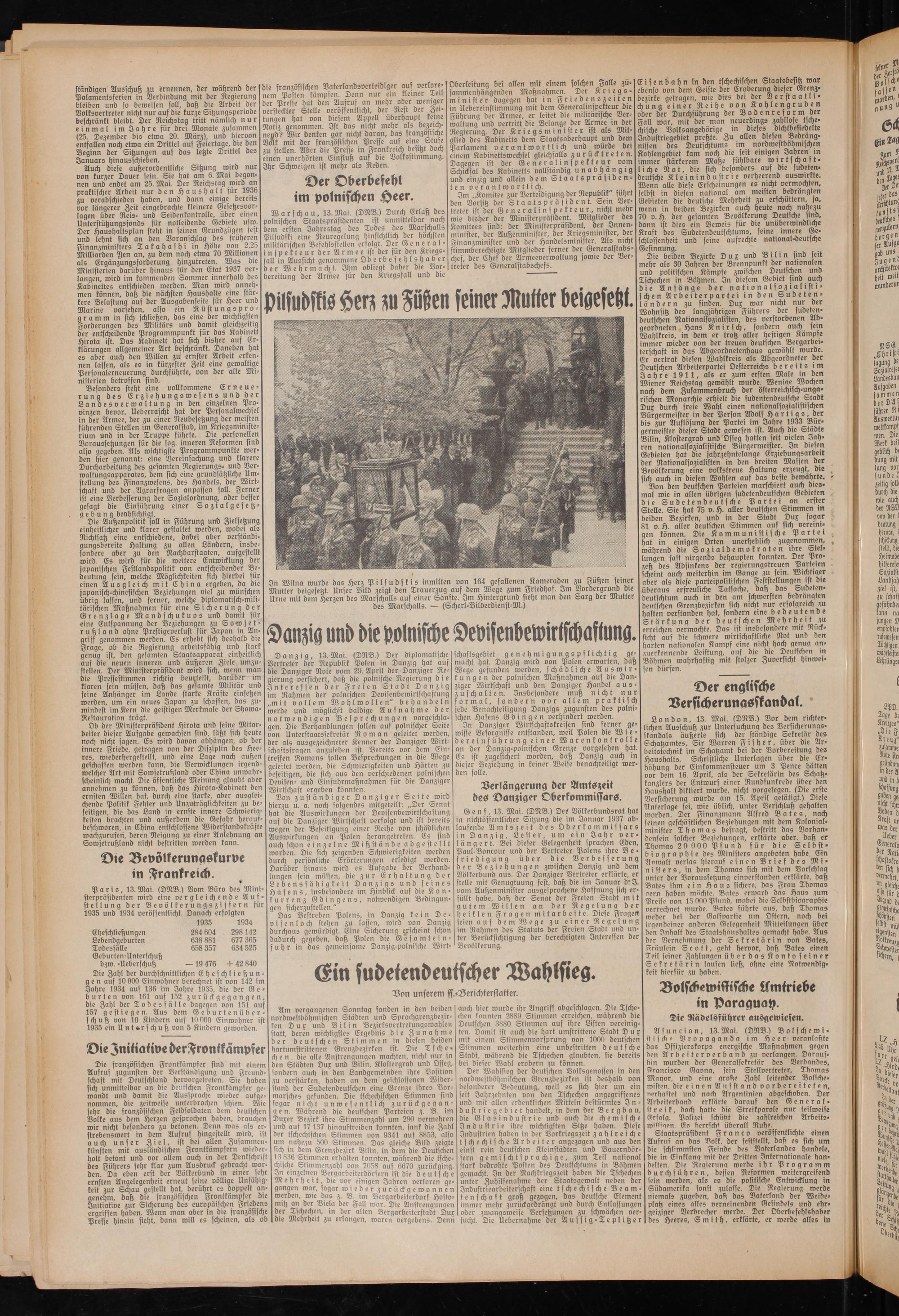P a r i s , 13. Mai. (DNB.) Vom Büro des Ministerpräsidenten wird eine vergleichende Auf- stellung der Beoölkerungsziffern für 1935 und 1934 veröffentlicht. Danach erfolgten