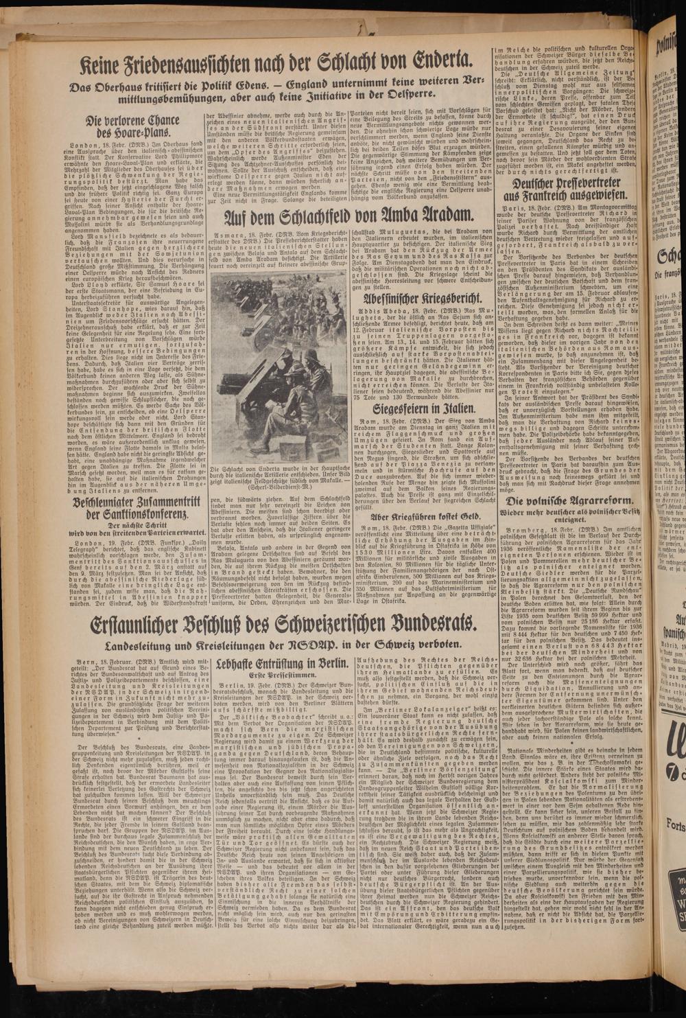 pen, die südwärts ziehen. Auf dem Schlachtfeld findet man nur sehr vereinzelt die Leichen von Abessiniern. Die meisten sind schon beerdigt oder verbrannt worden. Zuverlässige Ziffern über die Verluste fehlen noch immer auf beiden Seiten. Es hat aber den Anschein, daß die Italiener geringere Verluste erlitten haben, als ursprünglich angenom-
