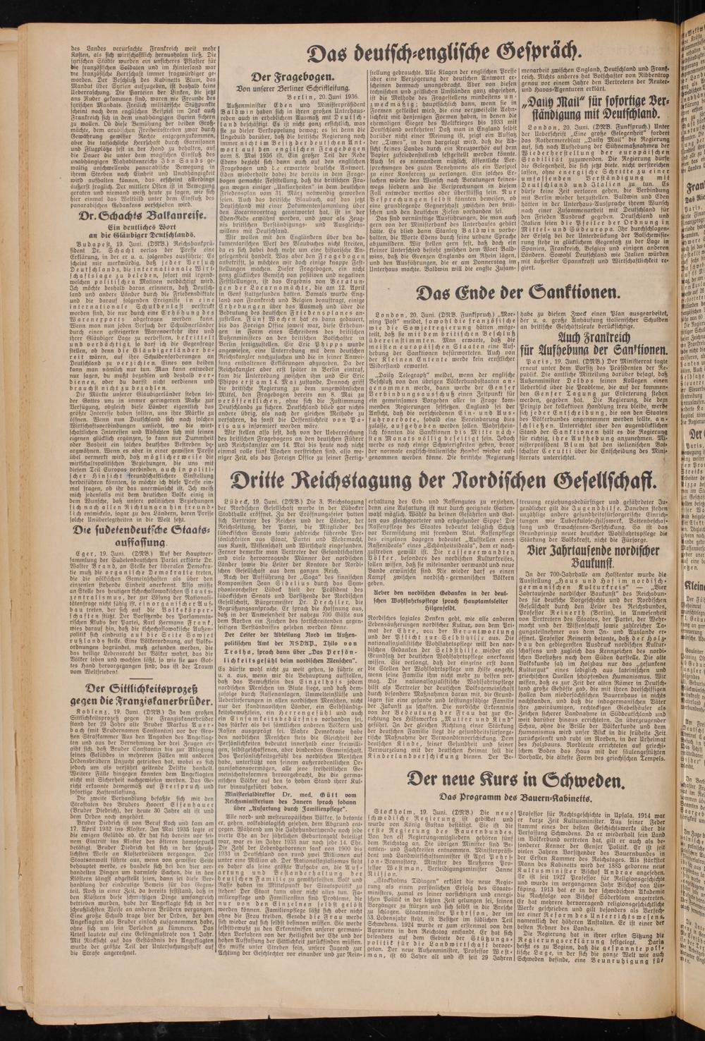 Außenminister Eden und Ministerpräsident Baldwin haben sich in ihren großen Unterhaus- reben auch in erheblichem Ausmaß mit Deutschland beschäftigt. Es ist nicht ganz ersichtlich, was sie zu dieser Verkoppelung bewog: es sei denn die Ungeduld darüber, daß die britische Regierung noch immer nicht im Besitz der beutschenAnt- wort auf b en englischen Fragebogen vom 8. Mai 1936 ist. Ein großer Teil ber Rebe Ebens bezieht sich bann auch auf ben englischen Fragebogen unb d.e erwartete beutsche Antwort. Eben wieberholte babei bie bereits in bem Fragebogen gemachte Feststellung, baß bie britischen Fragen wegen einiger „Unklarheiten" in bem deutschen Friedensplan vom 31. März notwendig geworden seien. Auch das britische Blaubuch, auf das jetzt Deutschland mit einer Dokumentensammlung über den Locarnovertrag geantwortet hat, ist in ber Eben-Rede erwähnt worben, unb zwar als Zeugnis britischen Verständigungs- unb Ausgleichswillens mit Deutschlanb.