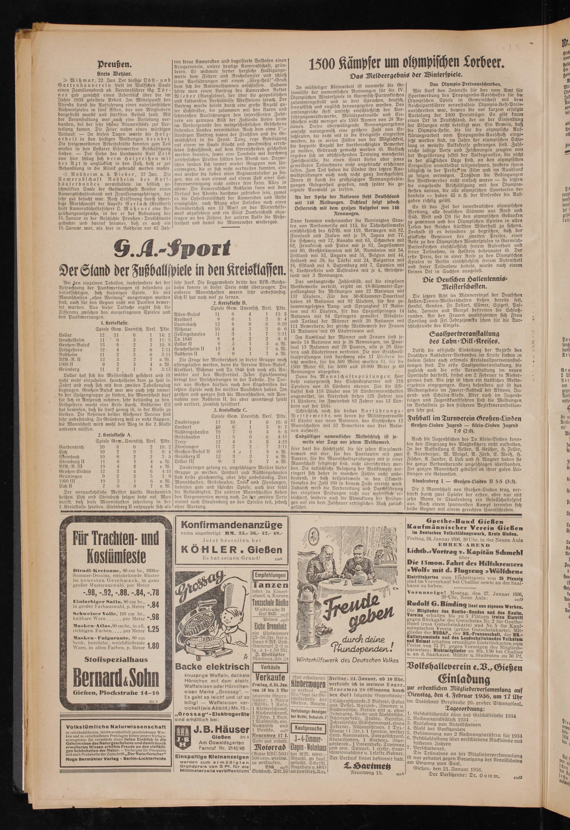 Freitag, 24. Januar 1936, 20 Uhr, in der Neuen Aula