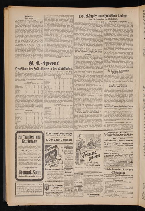 nicht mehr einzuholen. Heuchelheim kam zu spät in Fahrt und muß sich mit dem zweiten Tabellenplatz begnügen. Großen-Buseck war wie auch jetzt immer In der Spitzengruppe zu finden, die Mannschaft darf für sich in Anspruch nehmen, sehr beständig zu sein. Leihgestern macht eine Krise durch. Rodheims Elf hat bewiesen, daß sie stark genug ist, in der Klasse zu bleiben. Die Reserven beider Gießener Vereine sind sehr unbeständig. In Grünberg will es nicht klappen; die Mannschaft wird wohl den Weg in die 2. Klasse antreten müssen.