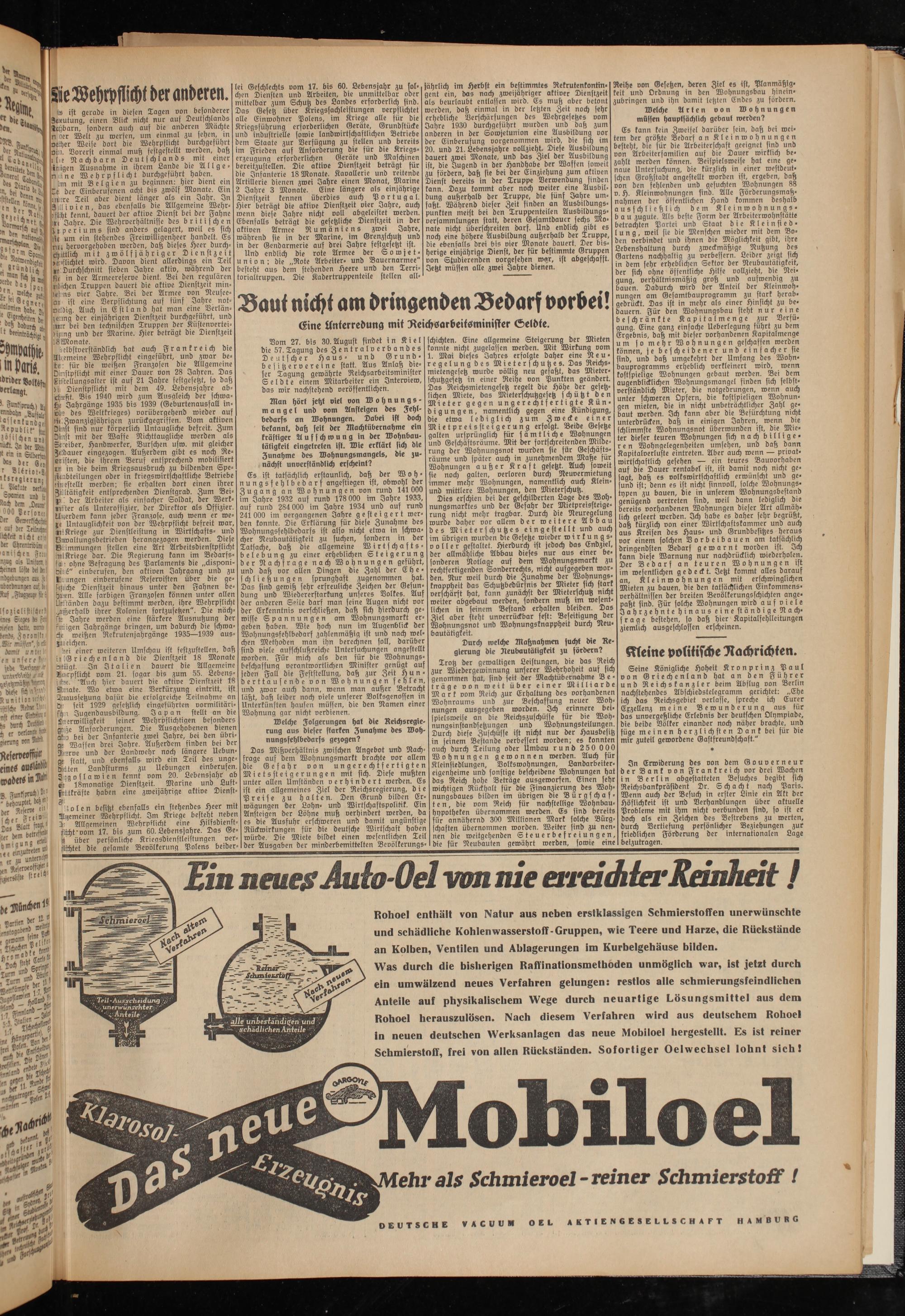 Dom 27. bis 30.August findet in Kiel die 57. Tagung des Zentralverbandes Deutscher Haus- und Grundbesitzervereine statt. Aus Anlaß dieser Tagung gewährte Reichsarbeitsminister S e l d t e einem Mitarbeiter ein Interview, das wir nachstehend veröffentlichen.