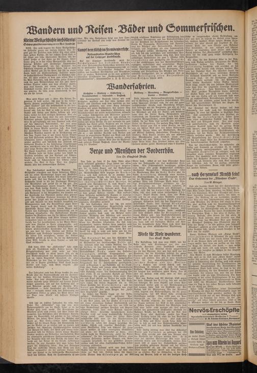 überfonnfer Berggesellen. Entgegengesetzt führt ein Wanderweg über die Hohe Geba oder die Ruine Henneberg, Stammsitz eines berühmten Grafengeschlechts, in den Werragrund hinab, der bei Meiningen sich malerisch in die Senke zwischen Rhön und Thüringer Wald bettet. Günstige Kraftpostverbindungen erleichtern die Zu- und Uebergänge, wo die Bahnen aufhören, so auch zwischen Kaltennordheim und Fladungen.