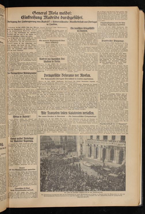 Man müsse allerdings darauf Hinweisen, daß die französische Regierung über keine Mittel verfüge, um sich rechtlich oder tatsächlich zu widersetzen, wenn Privatfirmen unter den Bedingungen, die die Handelsverträge zwischen Spanien und Frankreich festlegten, Sanitätsmaterial, Lebensmittel, Rohstoffe, Brennstoffe und Transportmittel für das Land, das Wasser oder die Luft rein handelsmäßigen Charakters verkaufen. Es wäre sehr zu wünschen, so schließt die Auslassung, wenn man die Aufgaben der französischen Behörden nicht durch Pressefeldzüge erschweren würde, die innen- und außenpolitische Erwägungen anstellten, obwohl diese doch voneinander getrennt bleiben müßten.