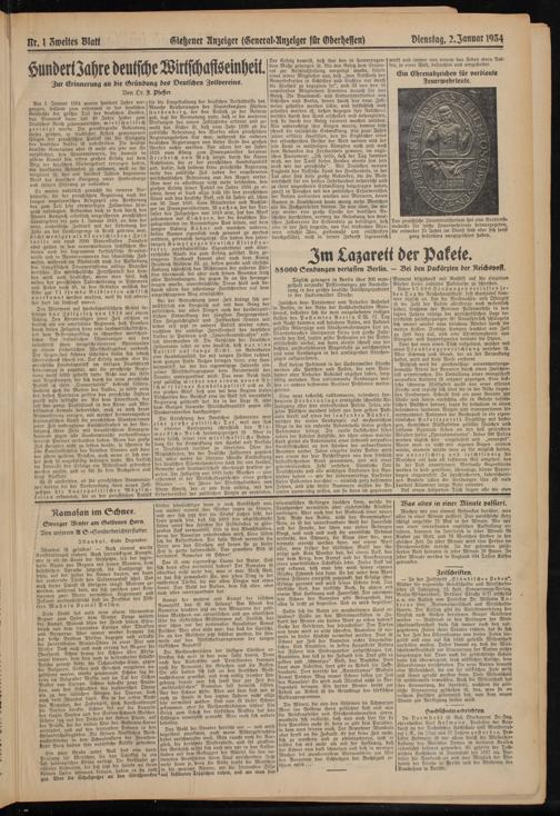 Am 1. Januar 1934 waren hundert Jahre vergangen, seitdem zum erstenmal in der deutschen Geschichte der größte Teil des deutschen Landes, das Bismarck bann fast 40 Jahre später xum Deutschen Reich zusammenfaßte, wirtschaftlich geeinigt würbe. Die grunblegenbe Bebeutung dieses großen, in frieblicher Arbeit gewonnenen Sieges ber preußischen Politik für bie Einigung des beutschen Volkes ist unbestritten. Die heutige beutsche Generation aber ist mehr als jebe vor ihr verpflichtet, den Staatsmännern, bie damals in zähem Kampf ben ersten großen Erfolg auf bem Weg ber deutschen Wiedergeburt errungen haben, ein dankbares Gedenken zu widmen, weil es ihr vergönnt ist, das vor hundert Jahren begonnene Werk ber deutschen Einigung unter Hindenburgs unb Hitlers Führung zu vollenben.