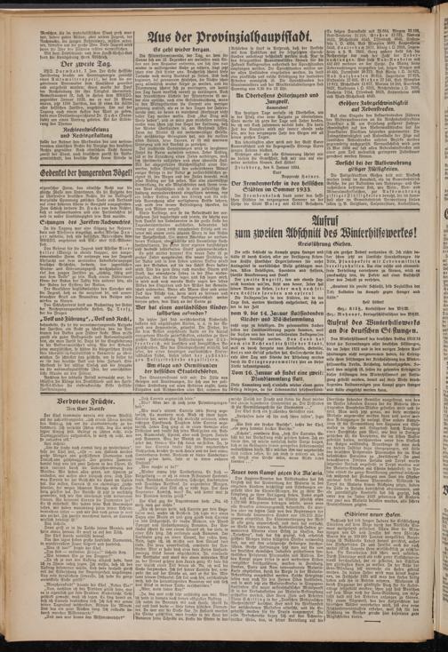 Das Winterhilfswerk des deutschen Volkes 1933/34 bittet die Verwaltungen aller deutschen Stiftungen, die im Jahre 1933 und in den vorigen Jahren Ausschüttungen nicht vorgenommen haben, die Erträgnisse ihrer Stiftungen der Reichsführung des Winterhilfswerkes Berlin, Reichstag, bekanntzugeben. Soweit dies möglich ist, sollen die gesamten Erträgnisse dieser Stiftungen dem Winterhilfswerk zur Verfügung gestellt werden, damit auf diese Weise brach-