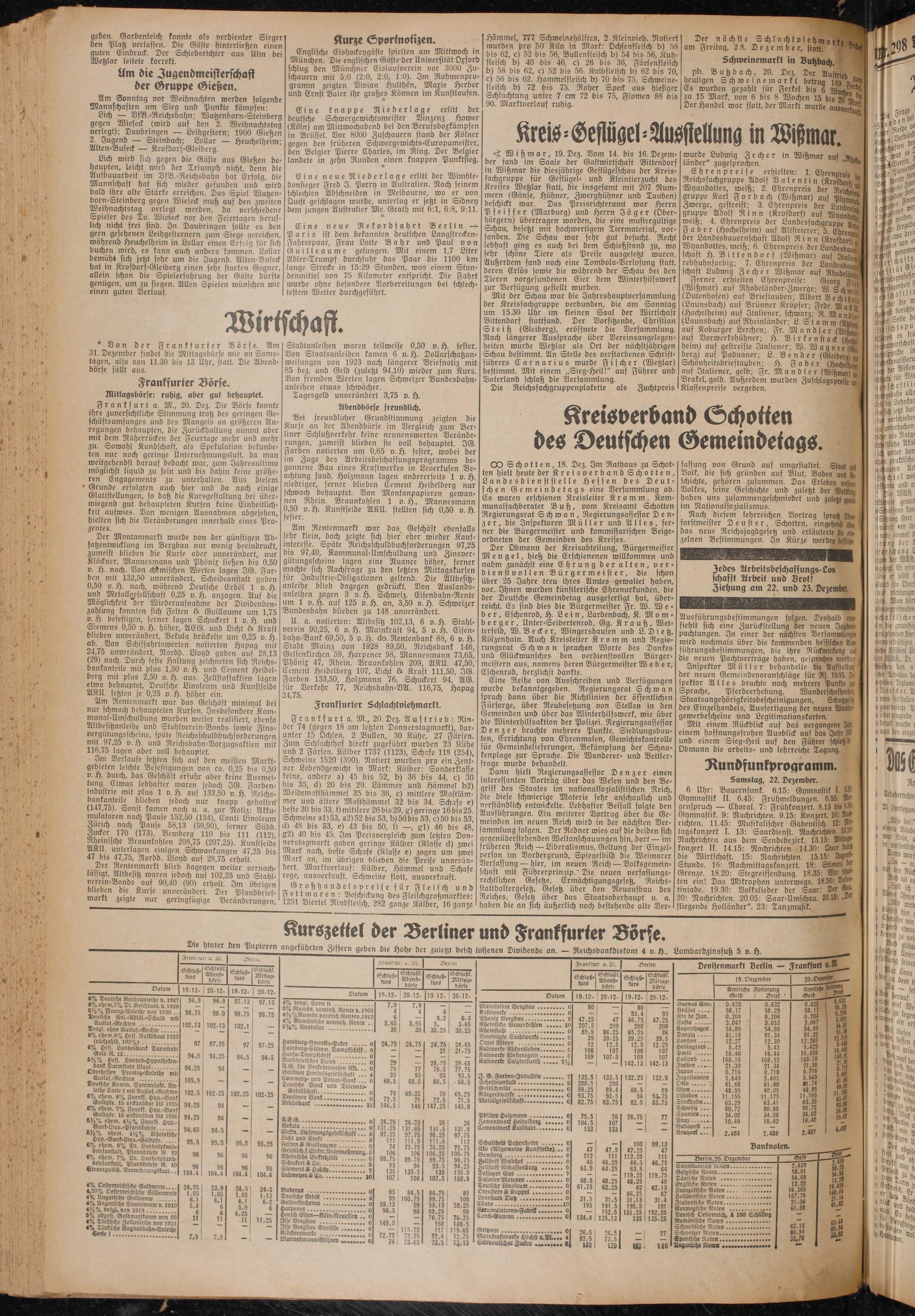 Lich — VfB.-Reichsbahn: Watzenborn-Steinberg gegen Wieseck (wird auf den 2. Weihnachtstag verlegt); Daubringen — Leihgestern; 1900 Gießen 2. Jugend — Steinbach; Lollar — Heuchelheim; Alten-Buseck — Krofdorf-Gleiberg.