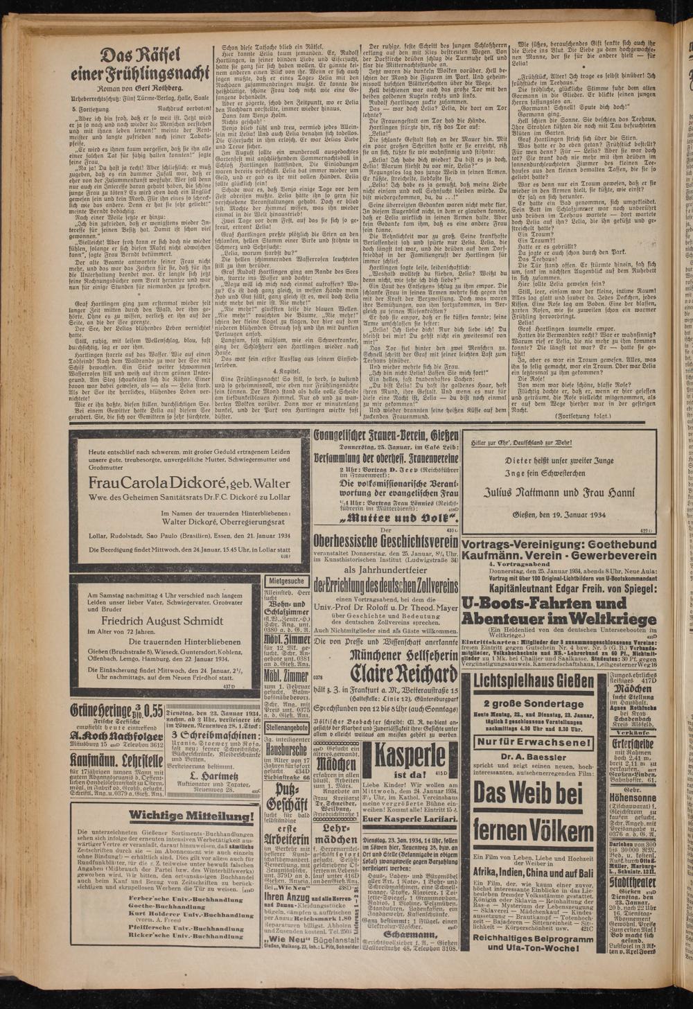 Gießen (Bruchstraße 8), Wieseck, Guntersdort, Koblenz, Offenbach, Lemgo, Hamburg, den 22 Januar 1934.