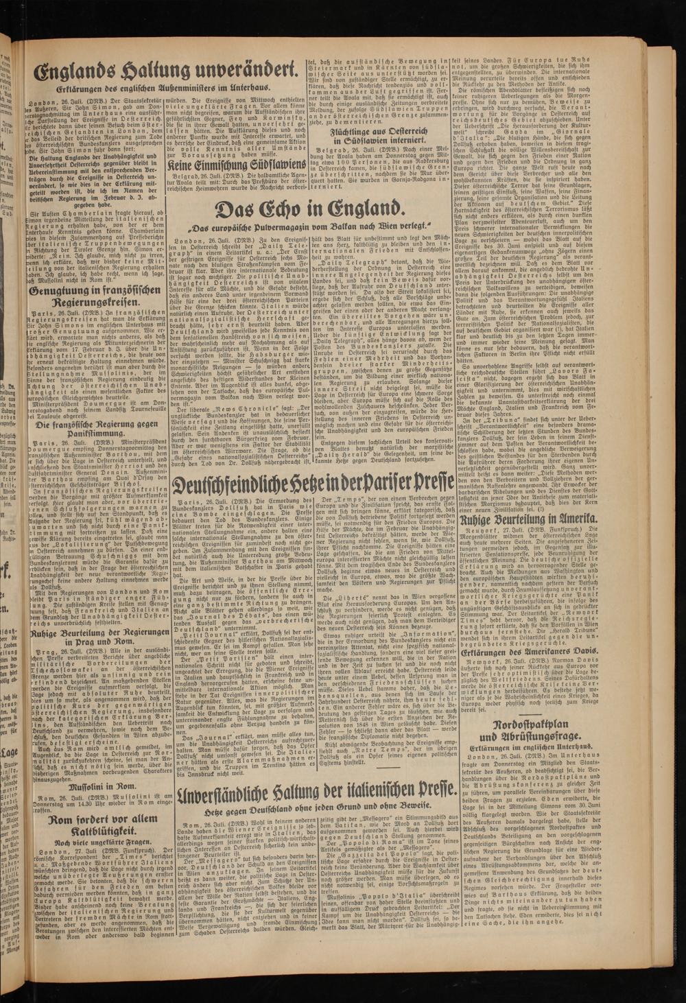 DeutschfeindlicheHetzemderpanserpresse m a r ; 5 96 Juli (DNB ) Die Ermordung des Der „T e rn p s", der von einem Verbrechen gegen in Paris wie Europa und die Zivilstatwn pnchtz ernste Fol-