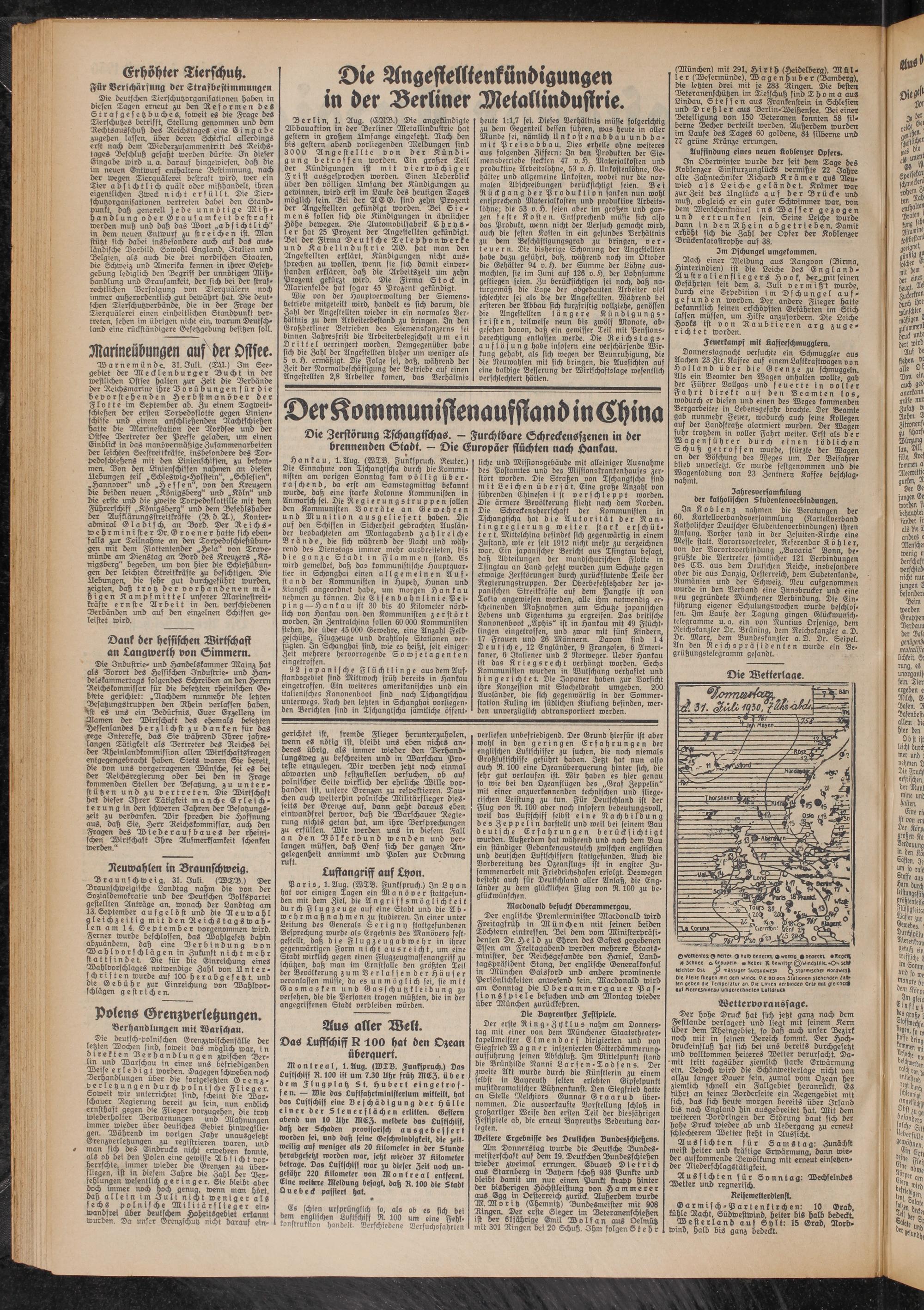 92 japanische Flüchtlinge aus dem Auf- ftanösgebiet sind Mittwoch früh bereits in Hankau eingetroffen. Ein weiteres amerikanisches und ein italienisches Kanonenboot sind nach Tschangtschau unterwegs. Nach den letzten in Schanghai oorliegen- den Berichten sind in Tschangtscha sämtliche öffent