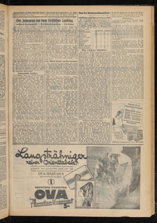 In der A b st i m m u n g wird Kapitel 27 (Mi- nisterium des Innern» genehmigt Das kommunistische Mißtrauensvotum wird abgelehnt Volkspartei, Volksrechtparlei, die Deutschnationalen und der Abg Dr Werner erklären, wegen der Begründung des Misttrauensantrages Stimmenthaltung 'Beim Kapitel Kreis- und Prooinzialoerwal- tung kritisiert Abg Art (Brp) die Ablösung d e r o b e r h e s s i s ch e n P r o v i n 3 l a I an- leihen Die Abstimmung wird ausgesetzt. — Es folgt dann