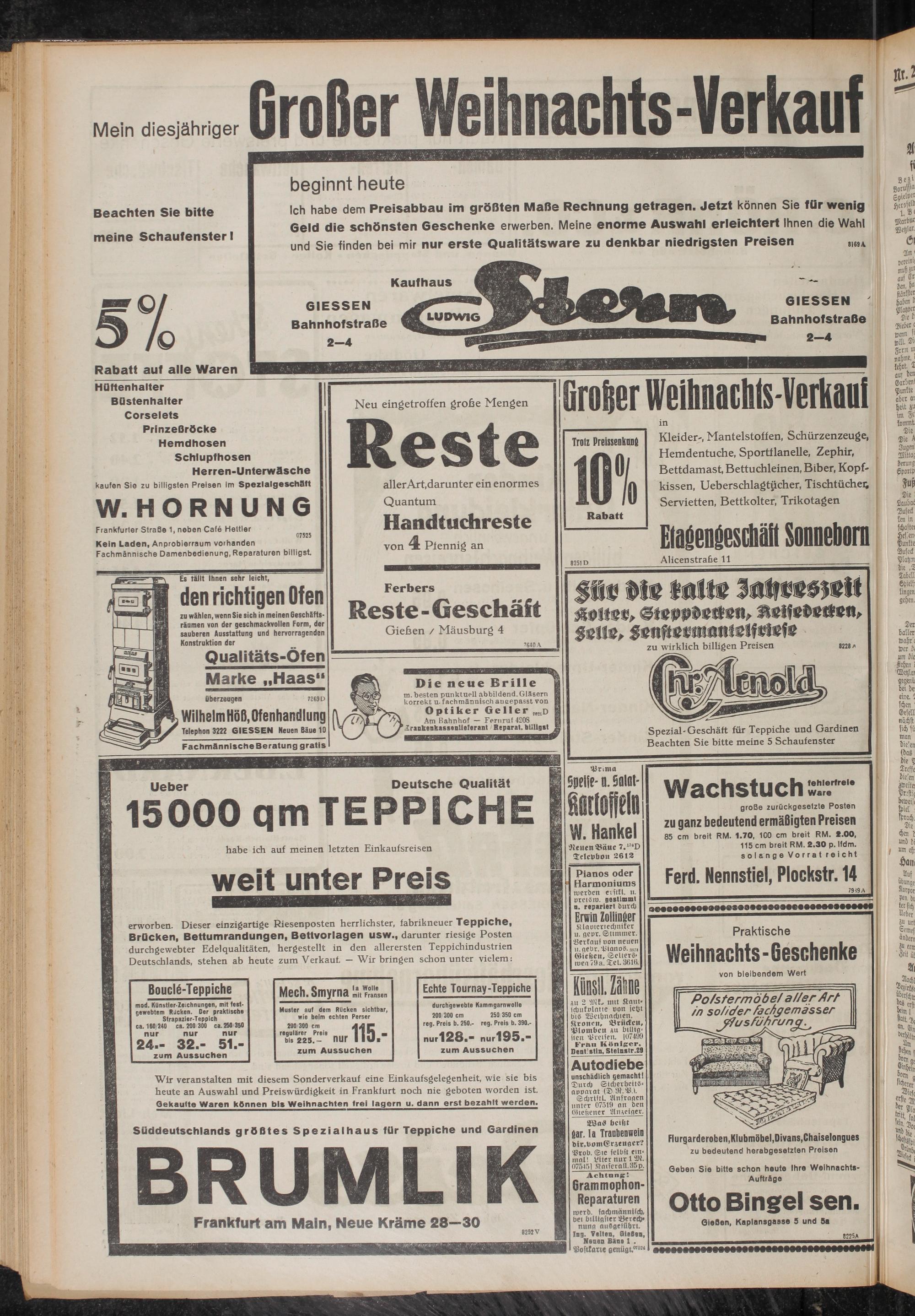 erworben. Dieser einzigartige Riesenposten herrlichster, fabrikneuer Teppiche, Brücken, Bettumrandungen, Bettvorlagen usw., darunter riesige Posten durchgewebter Edel Qualitäten, hergestellt in den allerersten Teppichindustrien Deutschlands, stehen ab heute zum Verkauf. - Wir bringen schon unter vielem;