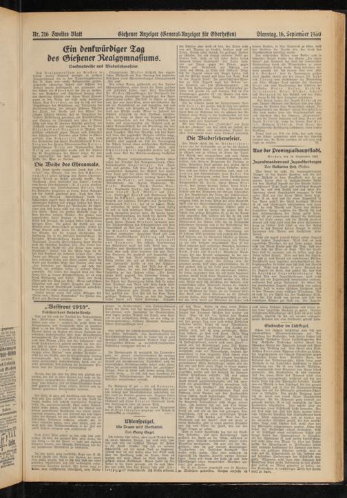 Ein denkwürdiger Tag des Gießener Realgymnasiums.