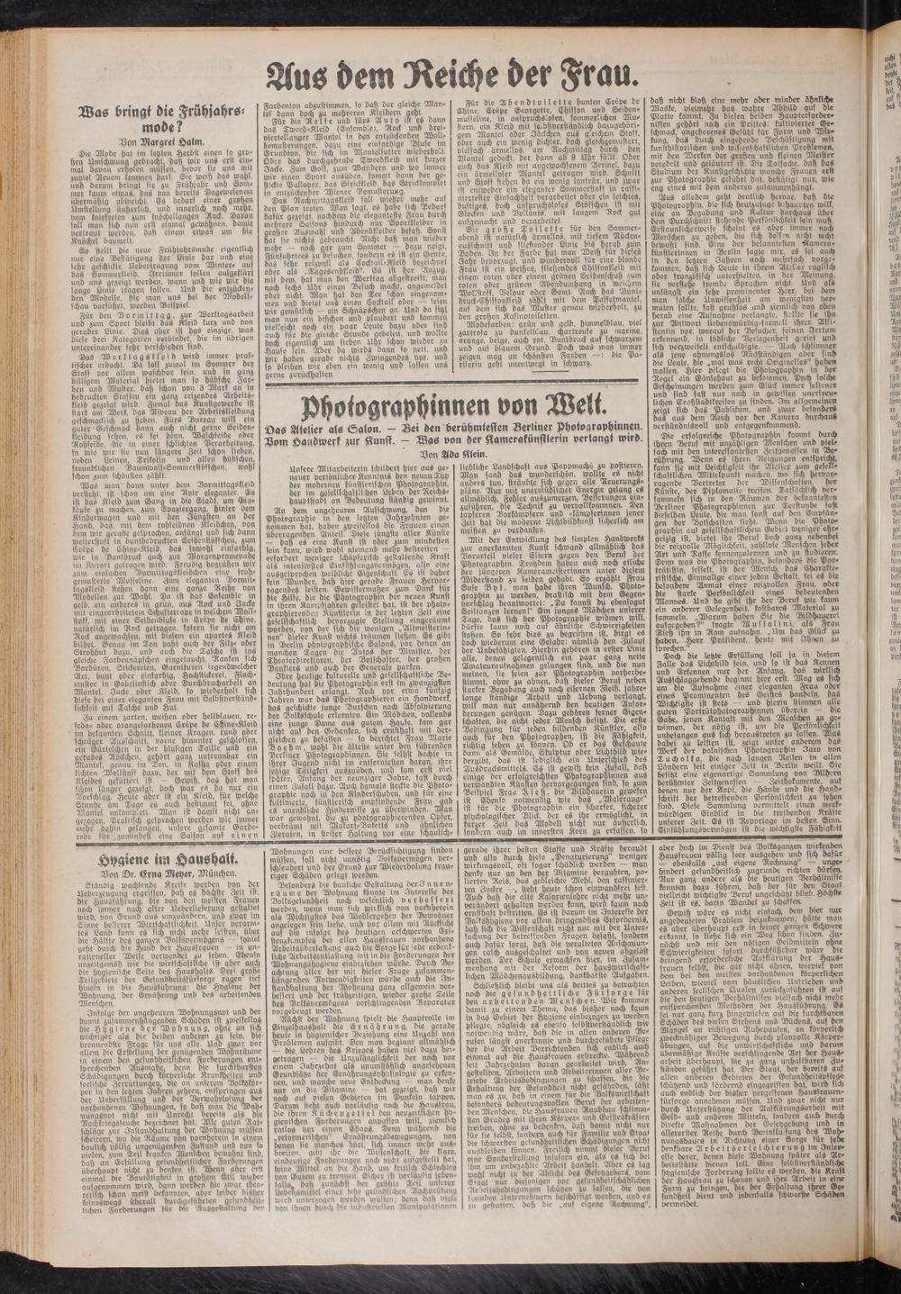 Das Atelier als Salon. - Bei den berühmtesten Berliner Photographinnen. Vom Handwerk zur Kunst. - Was von der Kamerakünstlerin verlangt wird.