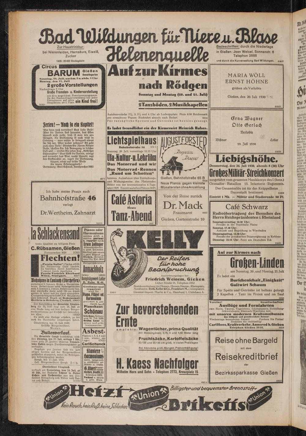 Gießen, den 20. Juli 1930 ~ —