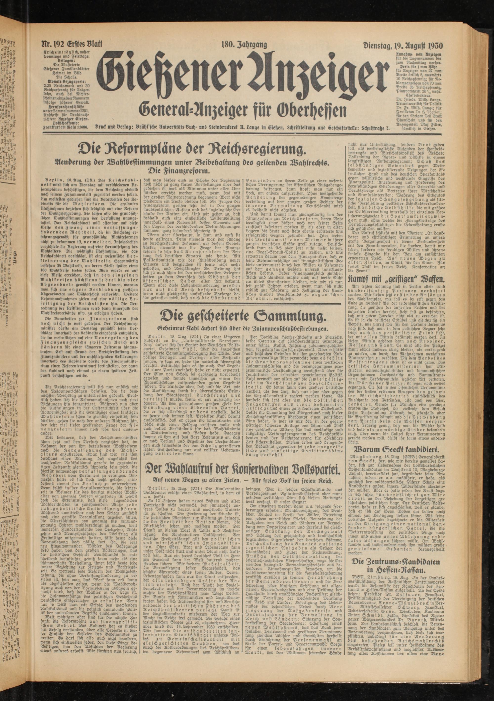 Dienstag, 19. August 1930