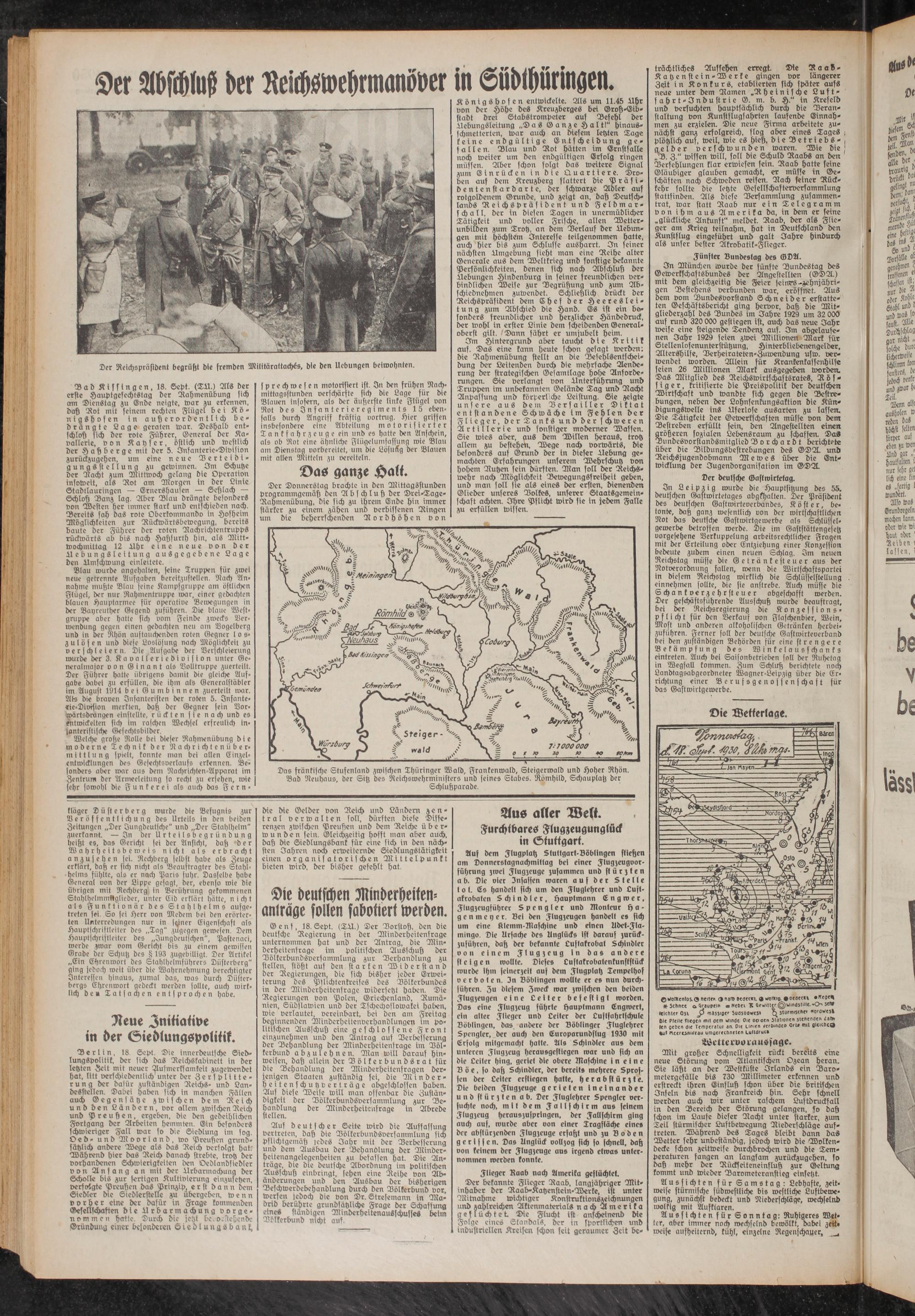 Das fränkische Stufenland zwischen Thüringer Wald, Frankenwald, Steiaerwald und Hoher Rhön. Bad Neuhaus, der Sitz des Neichswehrministers und feines Stabes. Römhild, Schauplatz der Schlußparade.