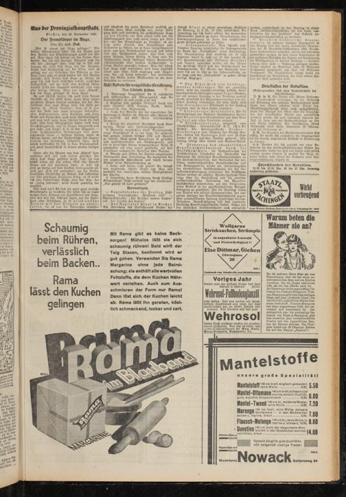 Mit Rama gibt es keine Backsorgen! Mühelos läßt sie sich schaumig rühren! Bald wirft der Teig Blasen, bestimmt wird er gut gehen. Verwenden Sie Rama Margarine ohne Jede Beimischung; sie enthält alle wertvollen Fettstoffe, die dem Kuchen Nährwert verleihen. Auch zum Ausschmieren der Form nur Rama! Dann löst sich der Kuchen leicht ab. Rama läßt Ihn geraten, köstlich schmeckend, locker und zart