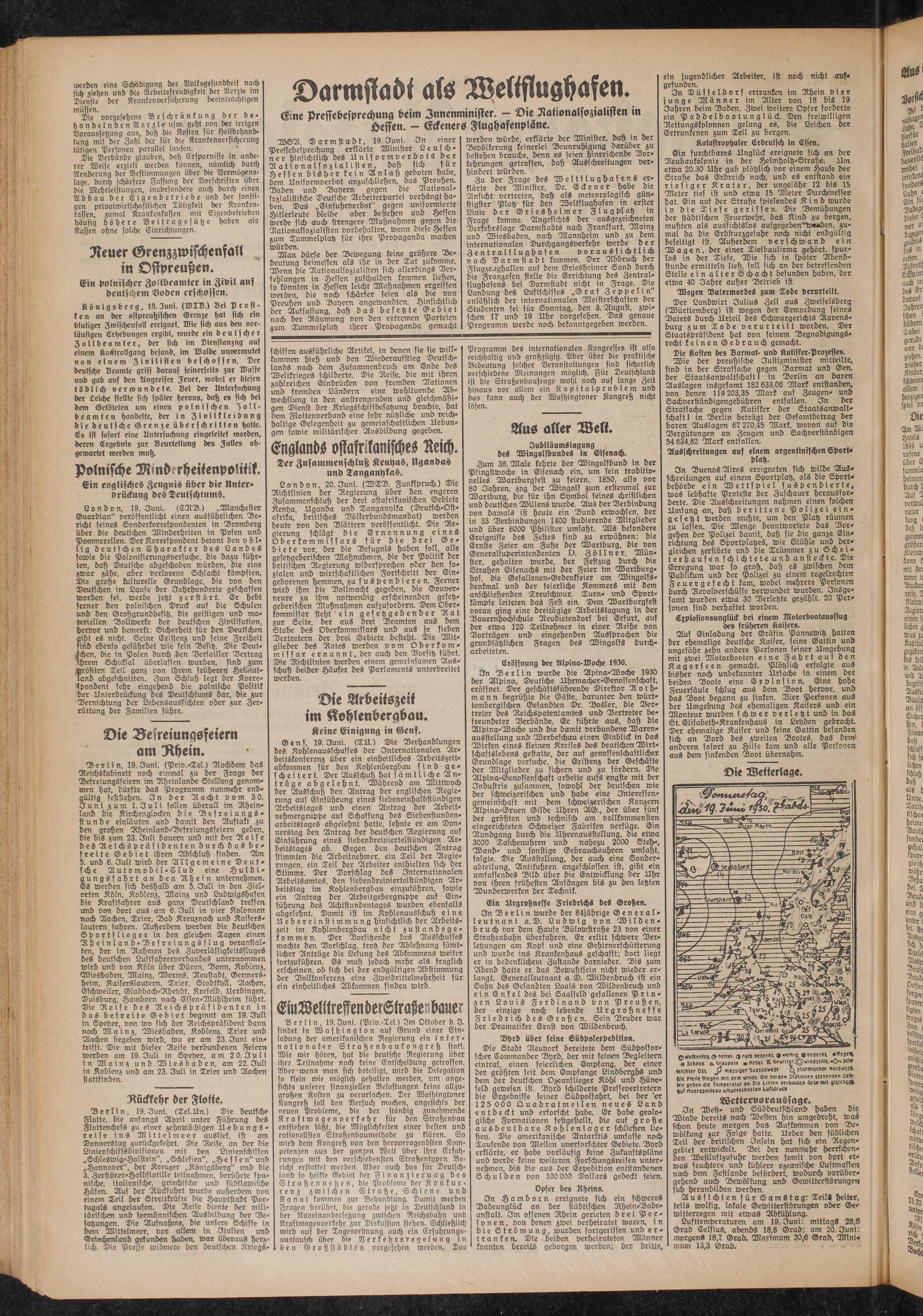 Eine Preffebesprechung beim Innenminister. — Oie Nationalsozialisten in Hessen. — Eckeners Zlughafenpläne.