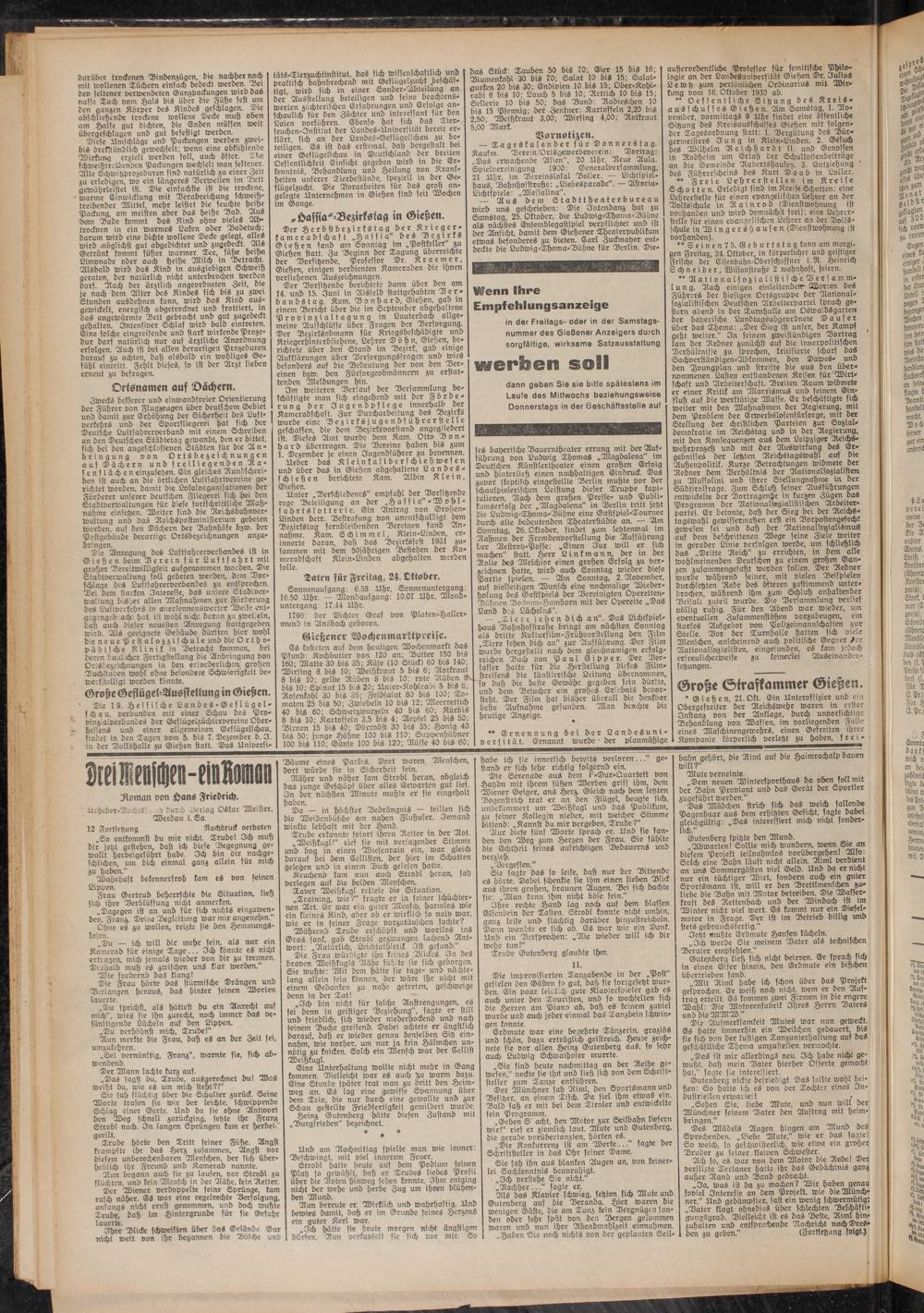 in der Freitags- oder in der Samstagsnummer des Gießener Anzeigers durch sorgfältige, wirksame Satzausstattung
