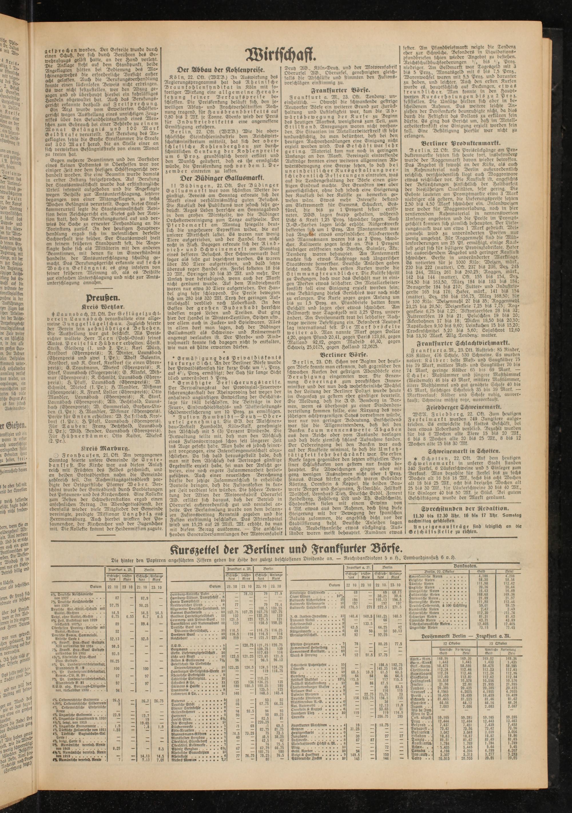 Kurszettel -er Berliner und Frankfurter Börse