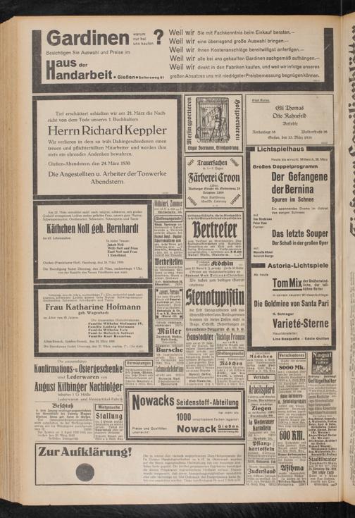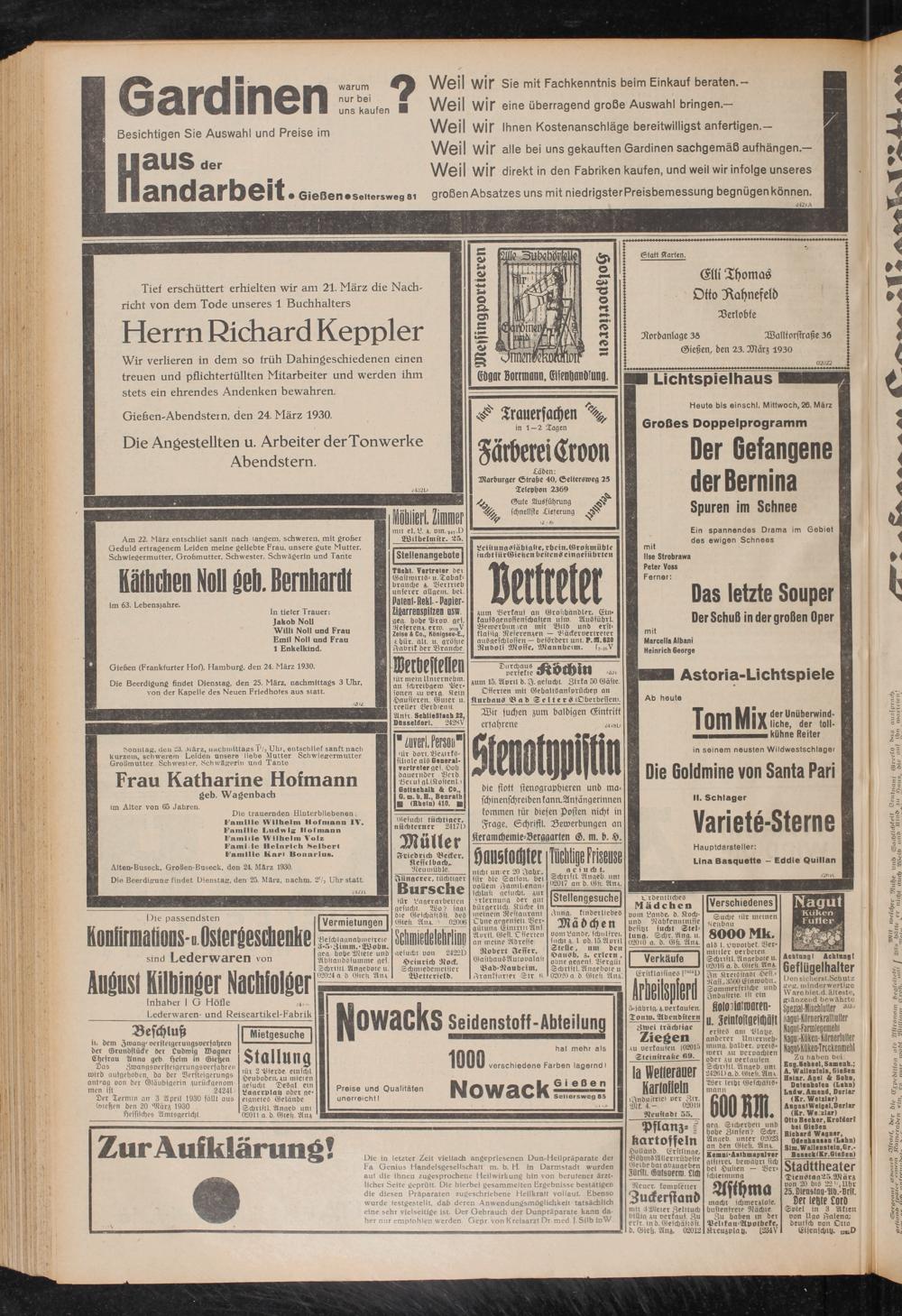 Gießen (Frankfurter Hof). Hamburg, den 24. März 1930.