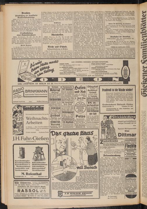< > f) 0 d) c 1 b c l m, 23. Ott. In den beiden Sälen des Gemeindehauses feierte die Gemeinde am Sonntag das diesjährige Erntedankfest. Die Feier war nicht nur von den hiesigen Einwohnern, sondern auch aus den benachbarten Gemeinden sehr gut besucht. Nach Schristoerlesung und Gebet durch Prediger Tripplcr hielten Rektor Ambach aus Wetzlar-Niedergirmes und Kaufmann Dinkel (Butzbach) die Festansprachen. Vorträge des Gc-