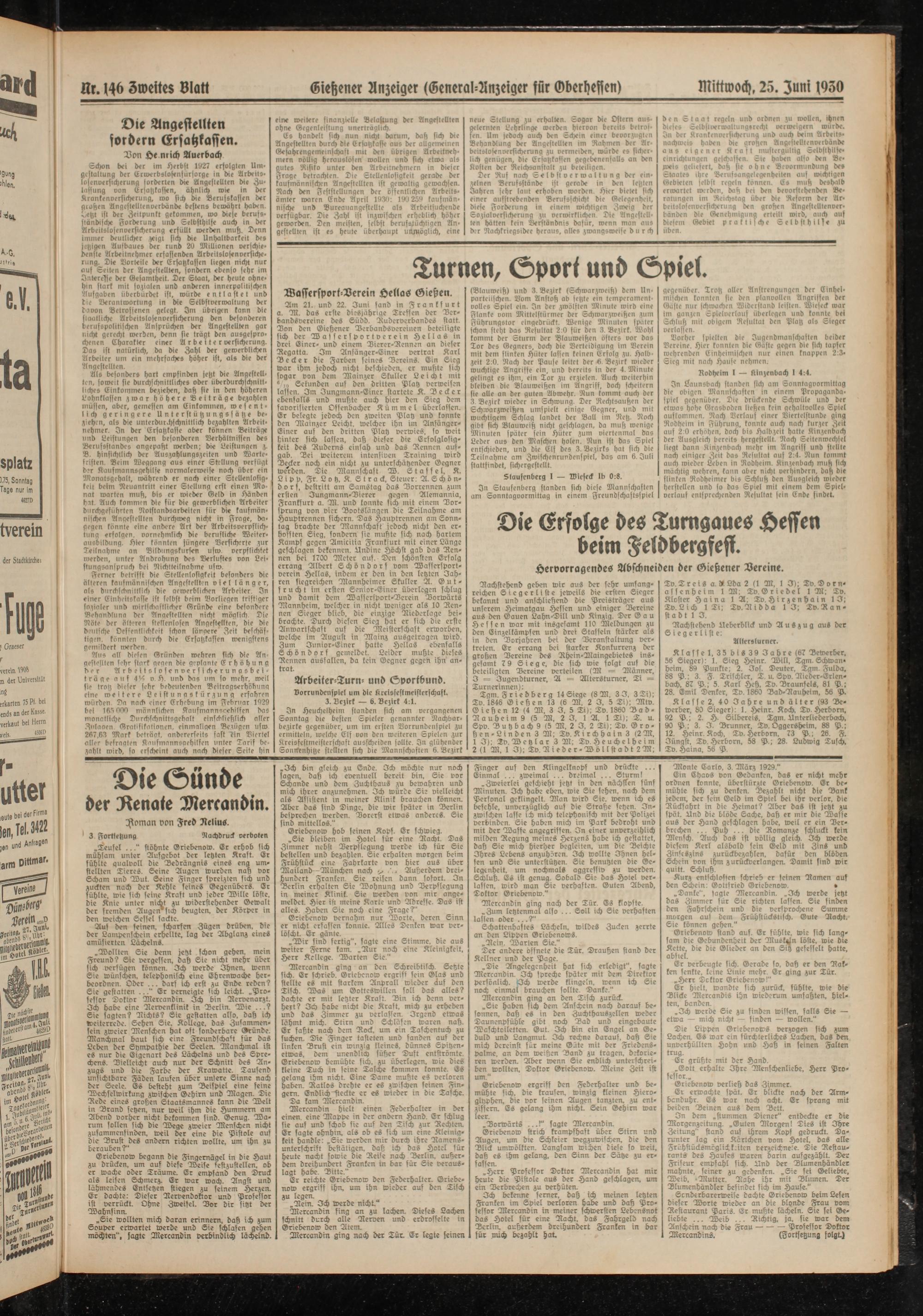 Hr. 146 Zweites Blatt Gießener Anzeiger (General-Anzeiger für Gberhefsen)Mittwoch, 25. Juni 1950