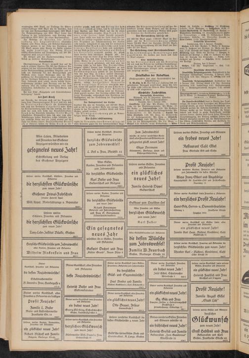 Allen Geschäftsfreunden und Bekannten die besten Wünsche zum Iahreswechsel! FamilieW.Ieuerbach Gießen, Marburger Straße 2S