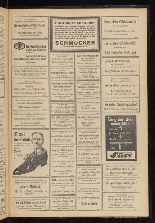 Unserer werten Kundschaft von Gießen und Umgegend sowie allen Bekannten ein kräftiges Prosit Neujahr!