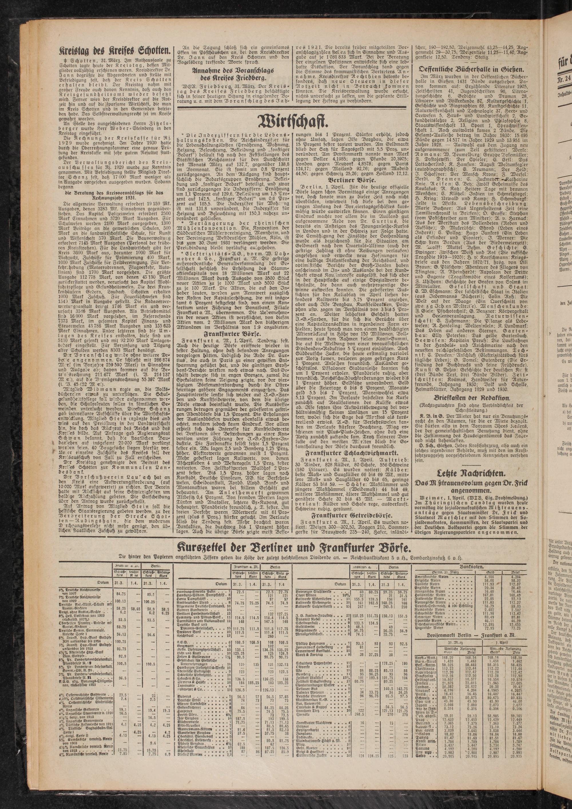 Kurszettel -er Berliner und Frankfurter Börse.