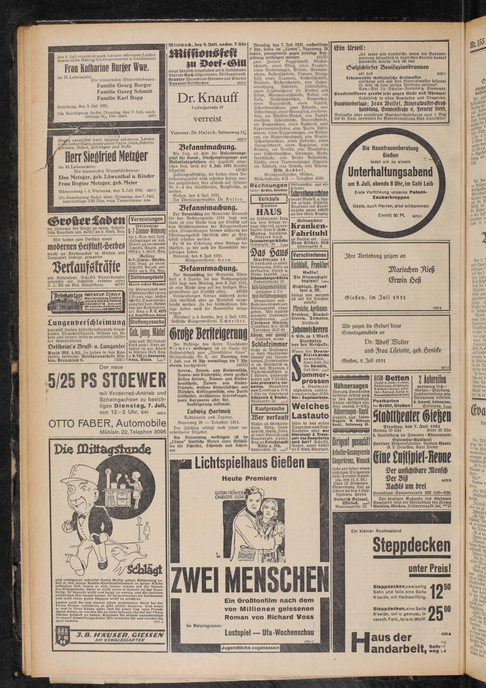 Gießen, 5. Iuli 1931