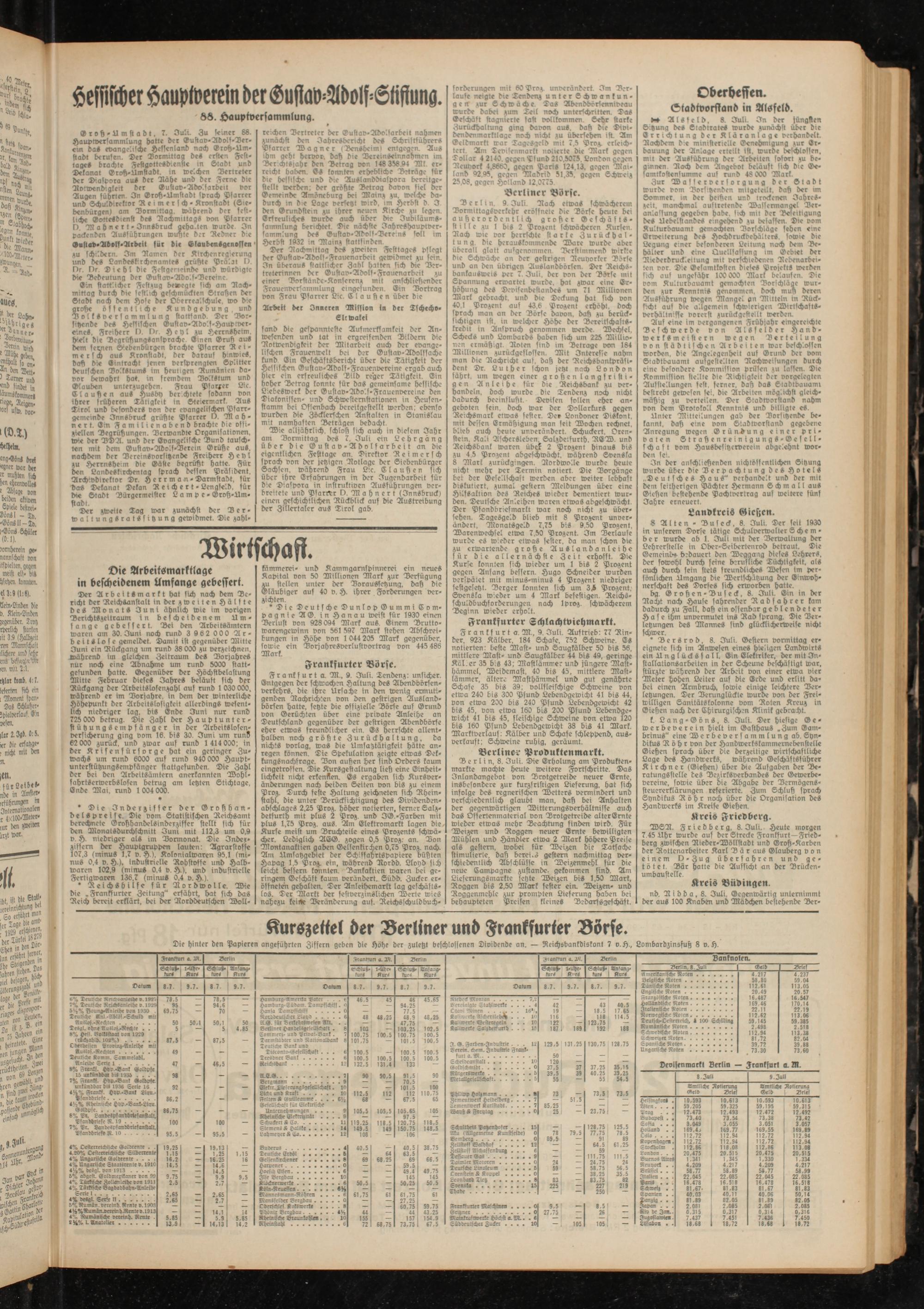 Kurszettel der Berliner und Frankfurter Börse.