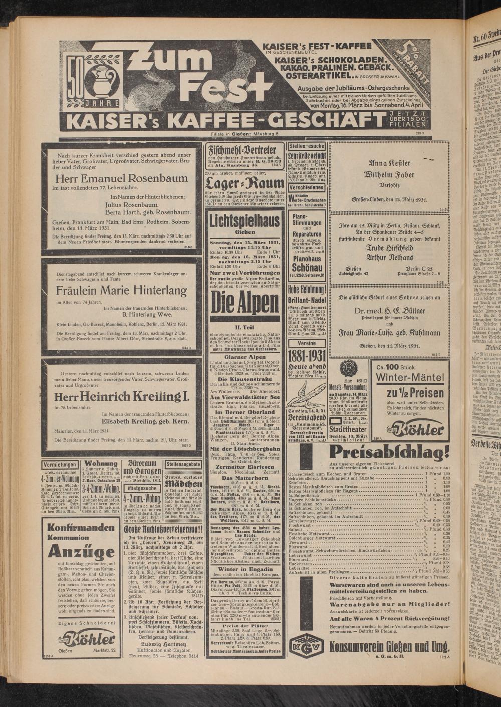 Klein-Linden, Gr.-Buseck, Mannheim, Koblenz, Berlin, 12. März 1931.