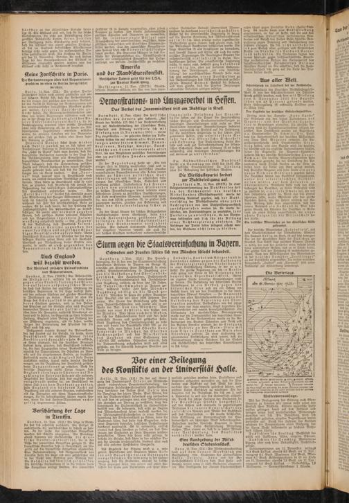 versität getrieben worden seien. Professoren und Dozenten erkannten weiterhin an, daß die Studenten au» Rücksicht auf da» Wohl der Uni- versität ihre Angriffsweife geändert hätten, und wüßten diesen Entschluß zu würdigen. Sie bedauerten tief die Vorgänge, die sich am 3 und 4. Rovernber in und vor der Hnioerfität abspiel- len. Durch die jetzige Haltung der Studenten fei d ie Grundlage wieder hergestellt, auf der Lehrer und Lernende in aegenfeiiigem Vertrauen d i e innere Gemeinschaft neu aufrichten könnten zum Wohle der Hochschule und des Vaterlande». — E» wurde beschlossen, diese Erllärung am DonnerStagsrüh der Studentenschaft am schwarzen Brett bekanntzugeben. Außerdem werden sämtliche Dozenten in ihren Kolleg» von dieser Entschließung Mitteilung machen. Man nimmt an, dah so in letzter Minute eine Verschärfung de» Konflikte» verhindert werden kann.