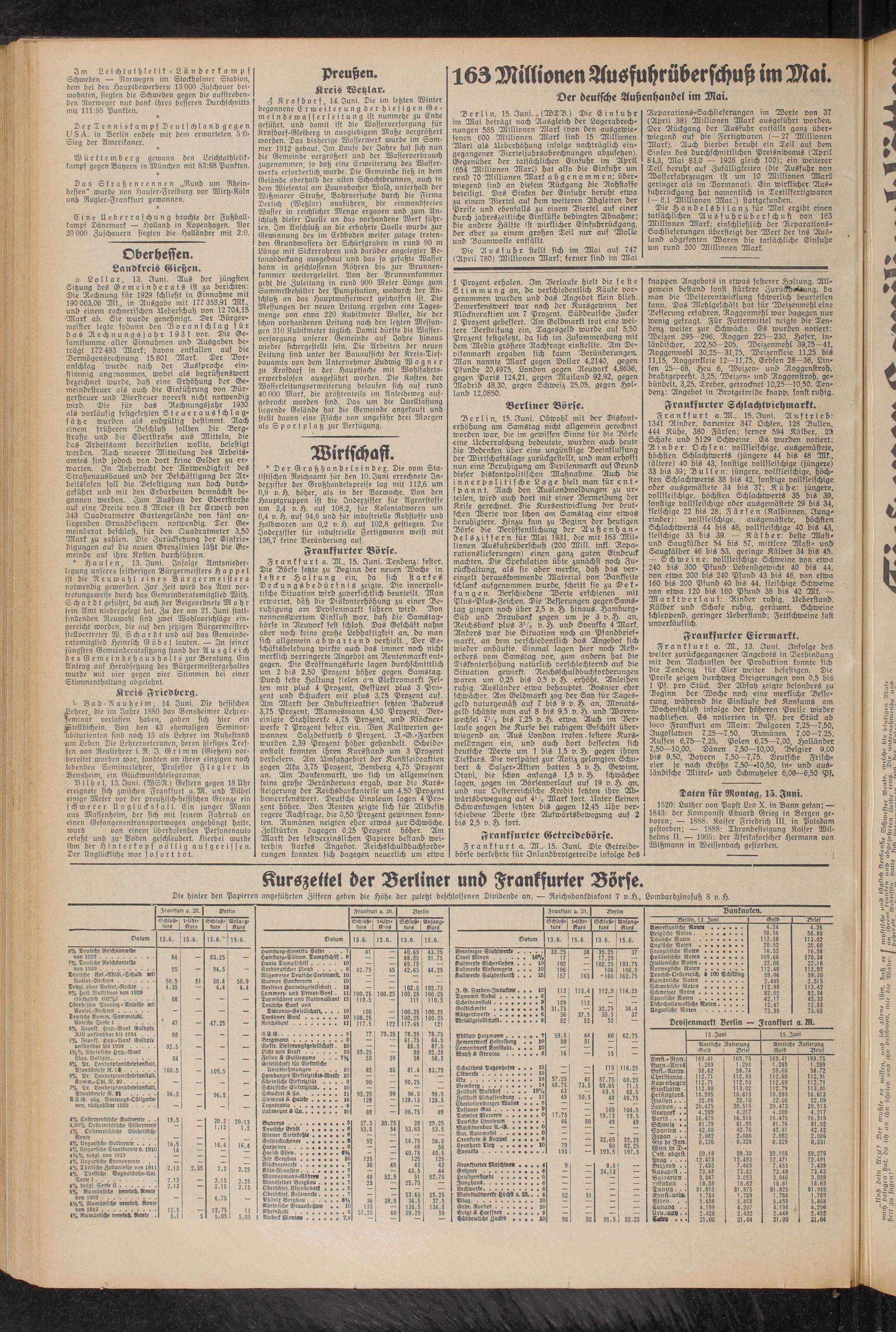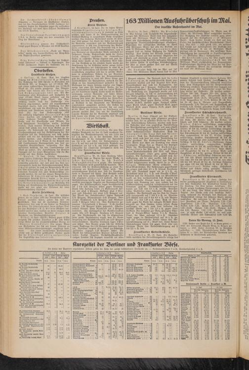 Die Handelsbilanz für Mai ergibt einen tatsächlichen Ausfuhrüberschuß von 163 Millionen Mark; einschließlich der Reparations- Sachlieferungen übersteigt der Wert der ins Ausland abgesetzten Waren die tatsächliche Einfuhr um rund 200 Millionen Mark.