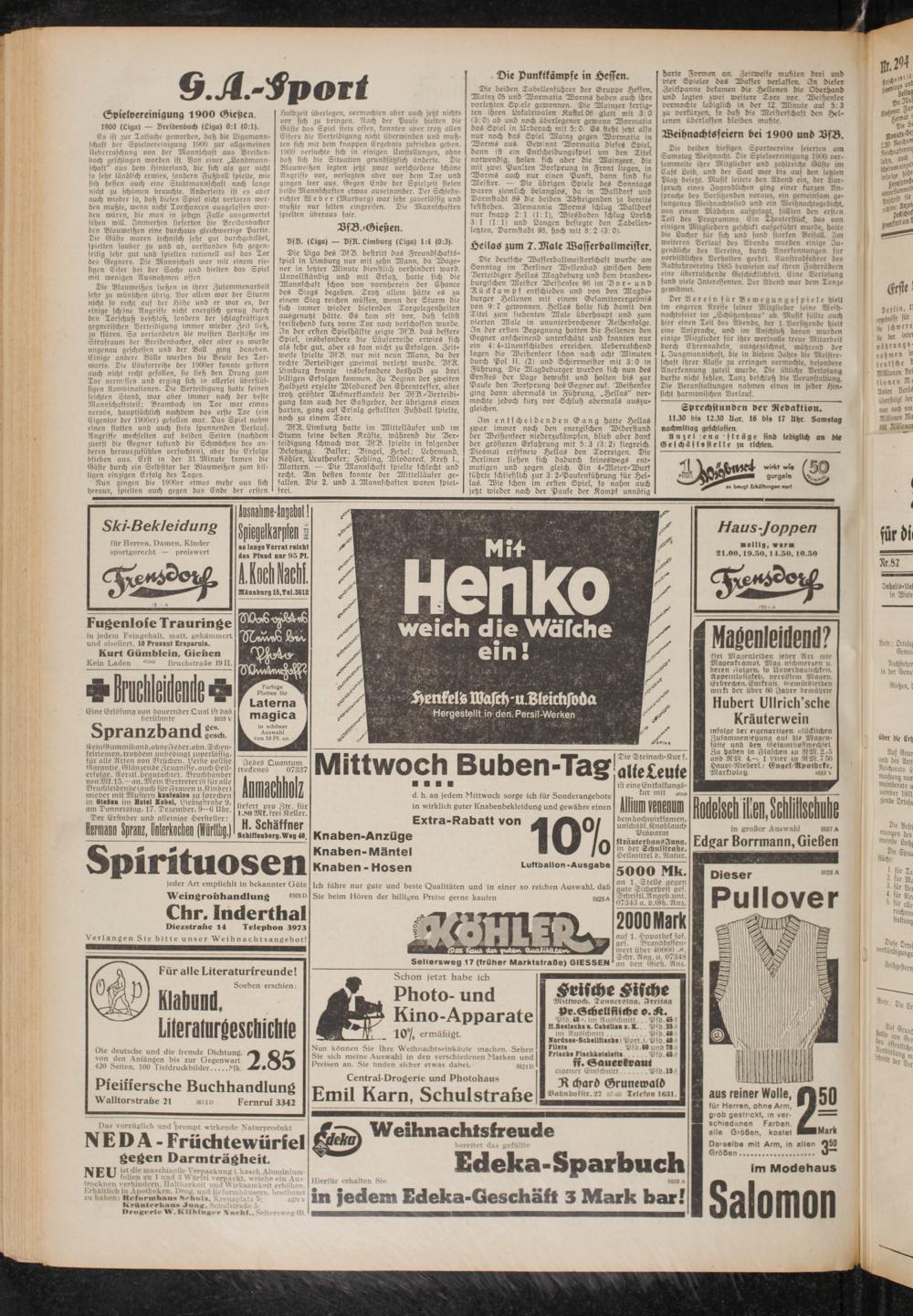 Die beiden hiesigen Sportvereine feierten am Samstag Weihnacht. Die Spielvereinigung 1900 oer- sammelte ihre Mitglieder und zahlreiche Gaste im (Taft Leib, und der Saal war bis auf den letzten Platz besetzt. Musik leitete den Abend ein, der Dorspruch eines Jugendlichen ging einer kurzen An- spräche des Vorsitzenden voraus, ein gemeinsam gesungenes Weihnachtslied und ein Weihnachtsgcdicht. von einem Mädchen aufgesagt, füllten den ersten Teil des Programms Em Theaterstwk, das von einigen Mitgliedern geschickt ausgefuhrt wurde, hatte die Lacher für sich und fand starken Beifall. Im weiteren Verlauf des Abends wurden einige Jugendliche des Vereins, durch Anerkennungen für vorbildliches Verhalten geehrt. Kunstradfahrer des Radfahroereins 1885 bewiesen auf ihren Fahrrädern eine überraschende Gejchicklichkeit. Eine Verlosung fand viele Interessenten. Der Abend war dem Tanze gewidmet.
