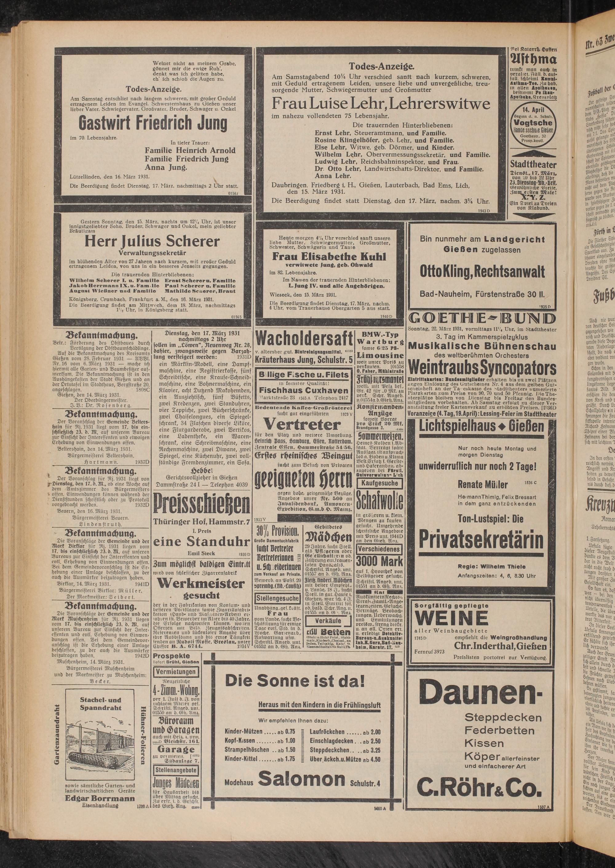 Daubringen. Friedberg L H., Gießen, Lauterbach, Bad Ems, Lieh, den 15. März 1931.