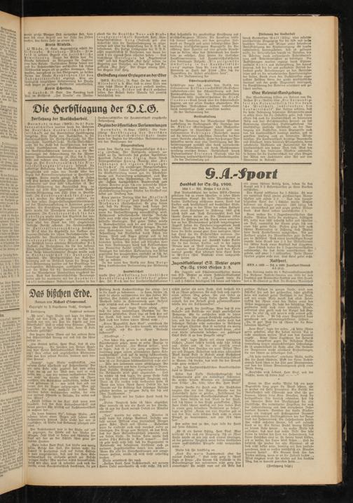 Darmstadt, 15. Sept. (WSR.) Die diesjährige Herbst tagung der Deutschen Landwirtschafts-Gesellschaft brachte heute den Beginn der öffentlichen Versammlungen mit den Beratungen der