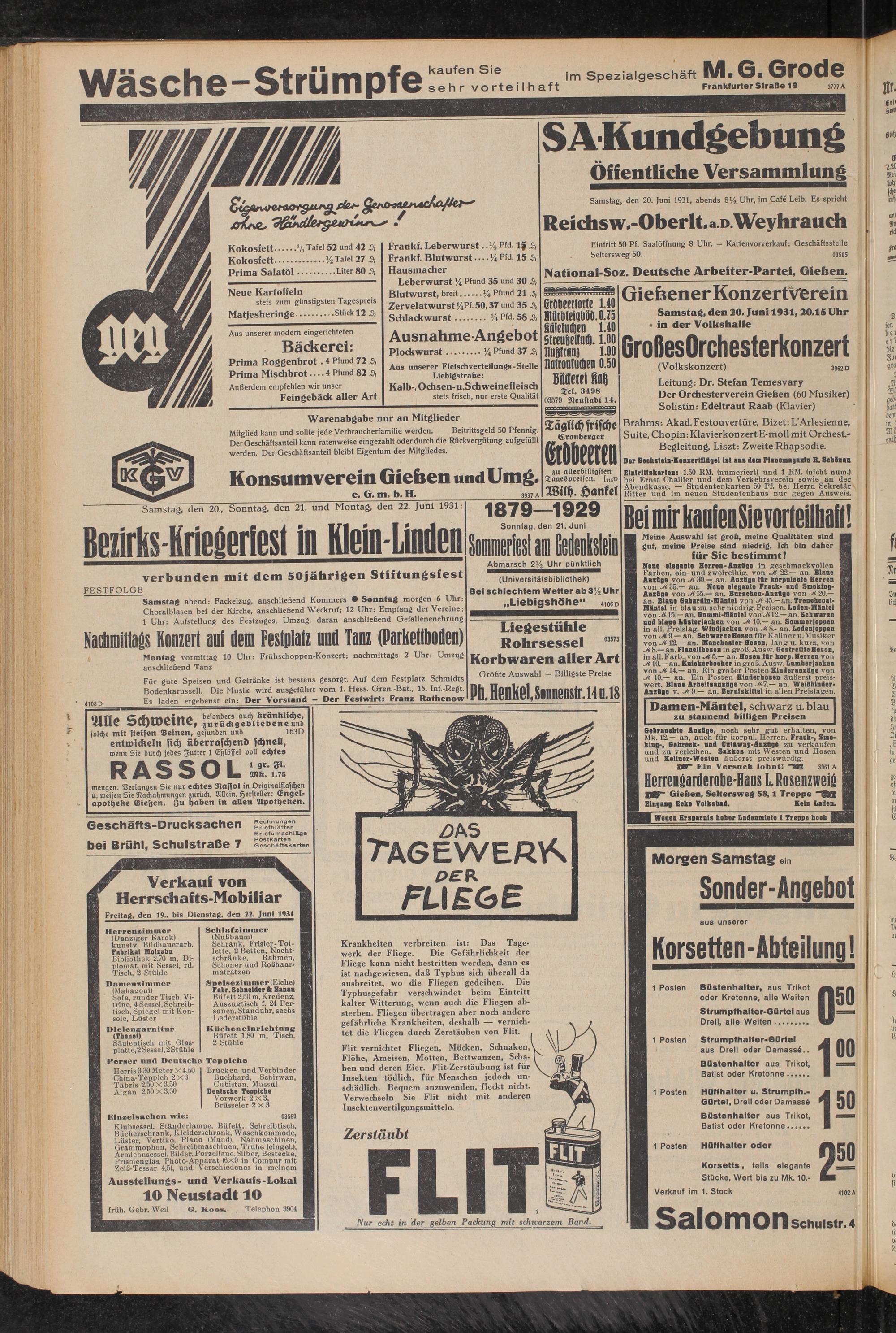 Samstag, den 20, Sonntag, den 21. und Montag, den 22. Juni 1931: