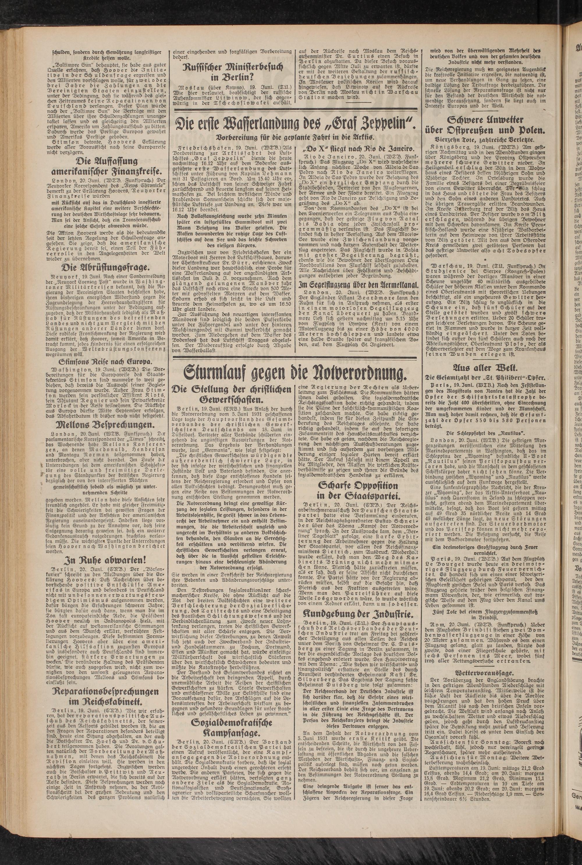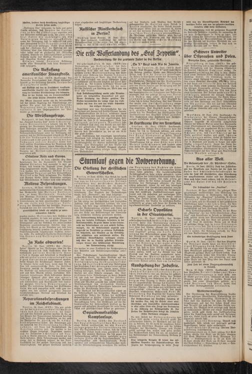 An dem Inhalt der Notverordnung vom 5. Juni 1931 wurde ernste Kritik geübt. Die entscheidenden Schritte, die Wirtschaft von den Fesseln zu befreien, die ihr durch die ungeheure lieber- lastung mit öffentlichen Abgaben und die falschen Methoden der Wirtschafts-, Finanz- und Sozialpolitik auferlegt sind, müssen noch getan werden. Der Reichsverband behält sich vor, im einzelnen zu den Bestimmungen der Notverordnung Stellung zu nehmen.
