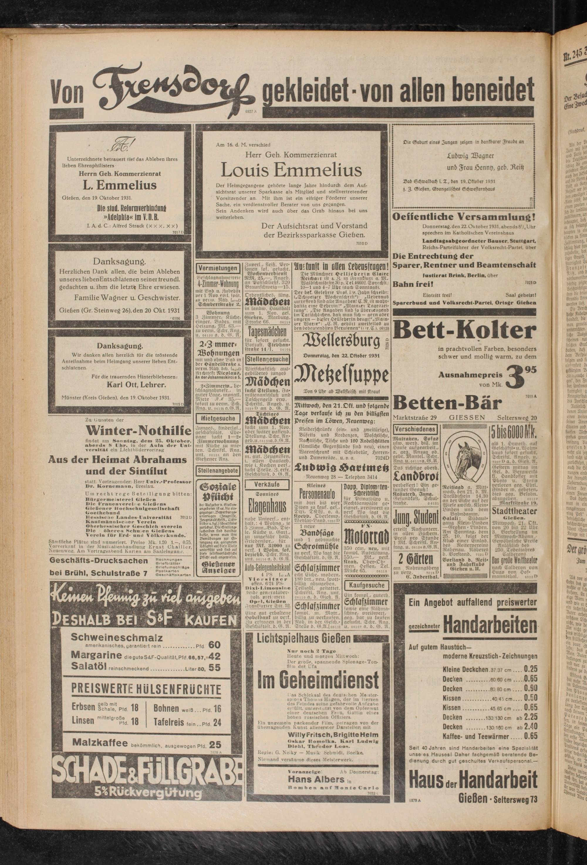 Giefien (Gr. Steinweg 26),den 20 Okt 1931