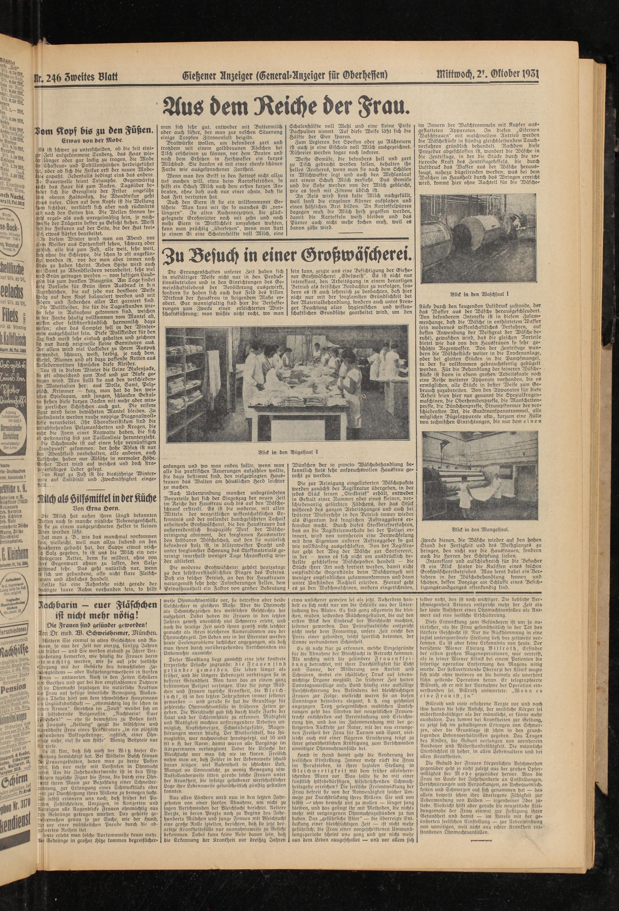 Die moderne Großwäscherei gehört heutzutage zu den selbstverständlichsten Dingen des Daseins. Daß ein solcher Betrieb, an den die Hausfrauen naturgemäß sehr hohe Anforderungen stellen, dem Privathaushalt ein Faktor von großer Bedeutung