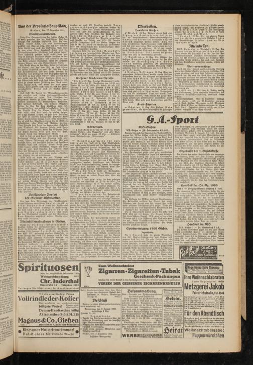 -+- Schotten, 21.Dez. Ein hiesiger Meh- germeister, der schon wiederholt an Festtagen