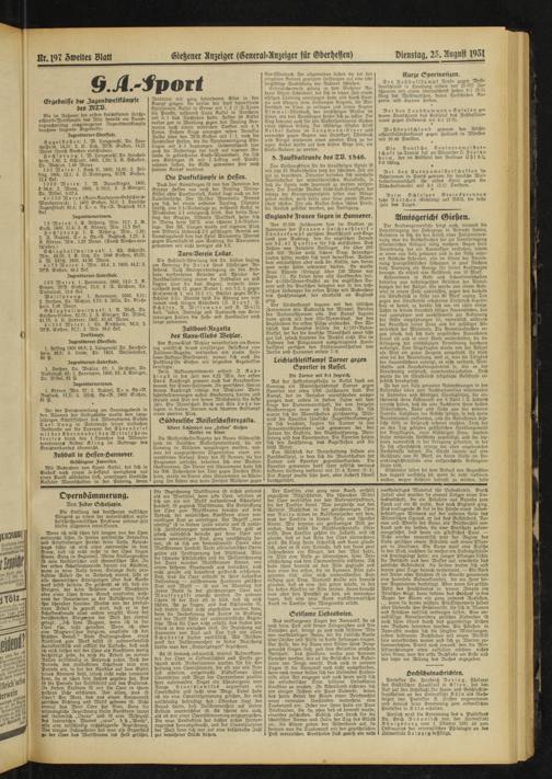 Kugelstoßen: 1. W Langenohl, Tv. Heu- chelhe.m. 14,21; 2. O Luh. VfB. Gießen, 14.21 Meter (durch Stechen entschieden).