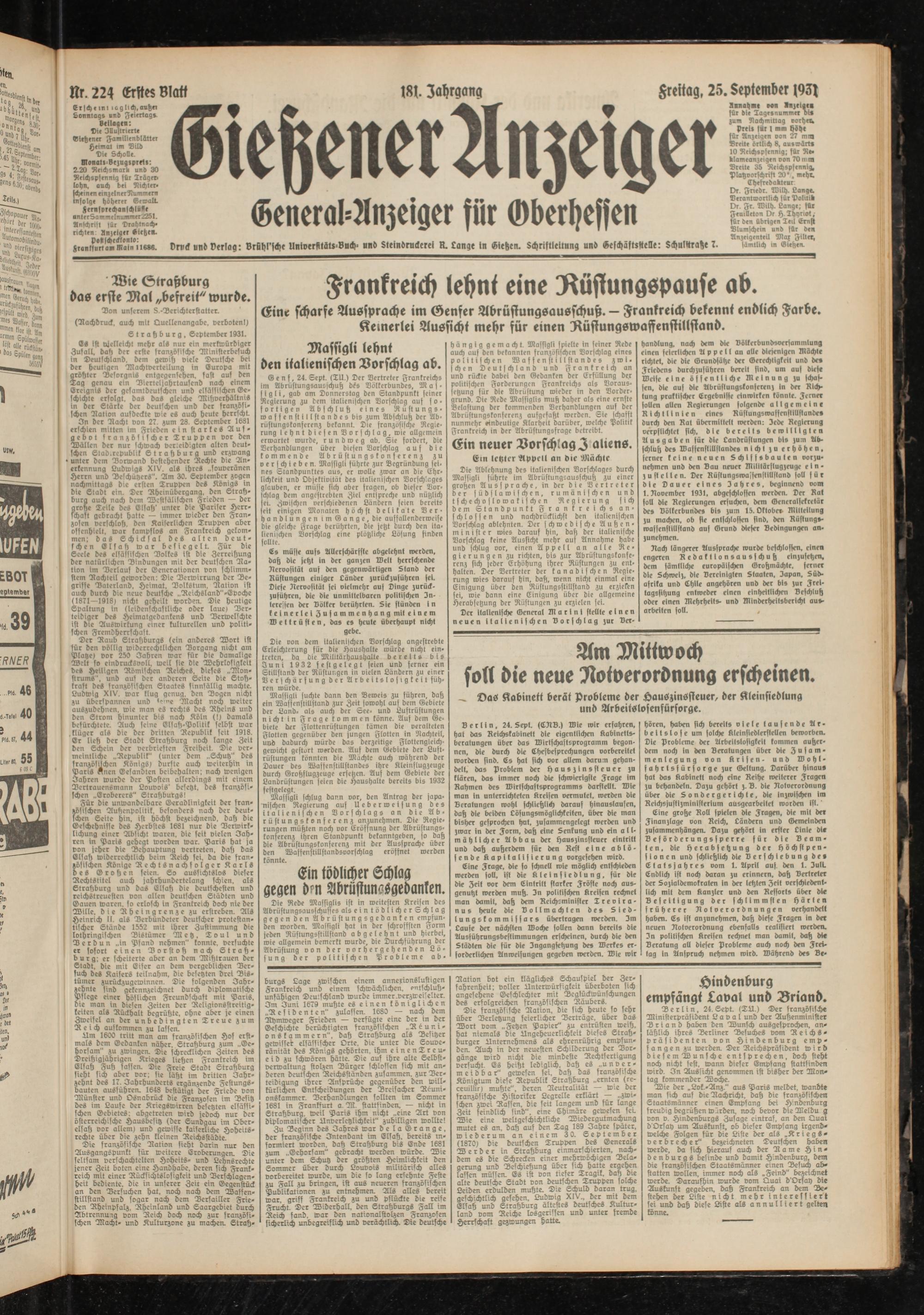 Dr. Fnedr. Wilh. Gange, verantwortlich für Politik» Dr. Fr. Wilh. Gange; für Feuilleton Dr H.Tbynot, für den übrigen leil Ernst Dlumfchein und für den Anzeigenteil Ma? Filter, sämtlich in Giehen.
